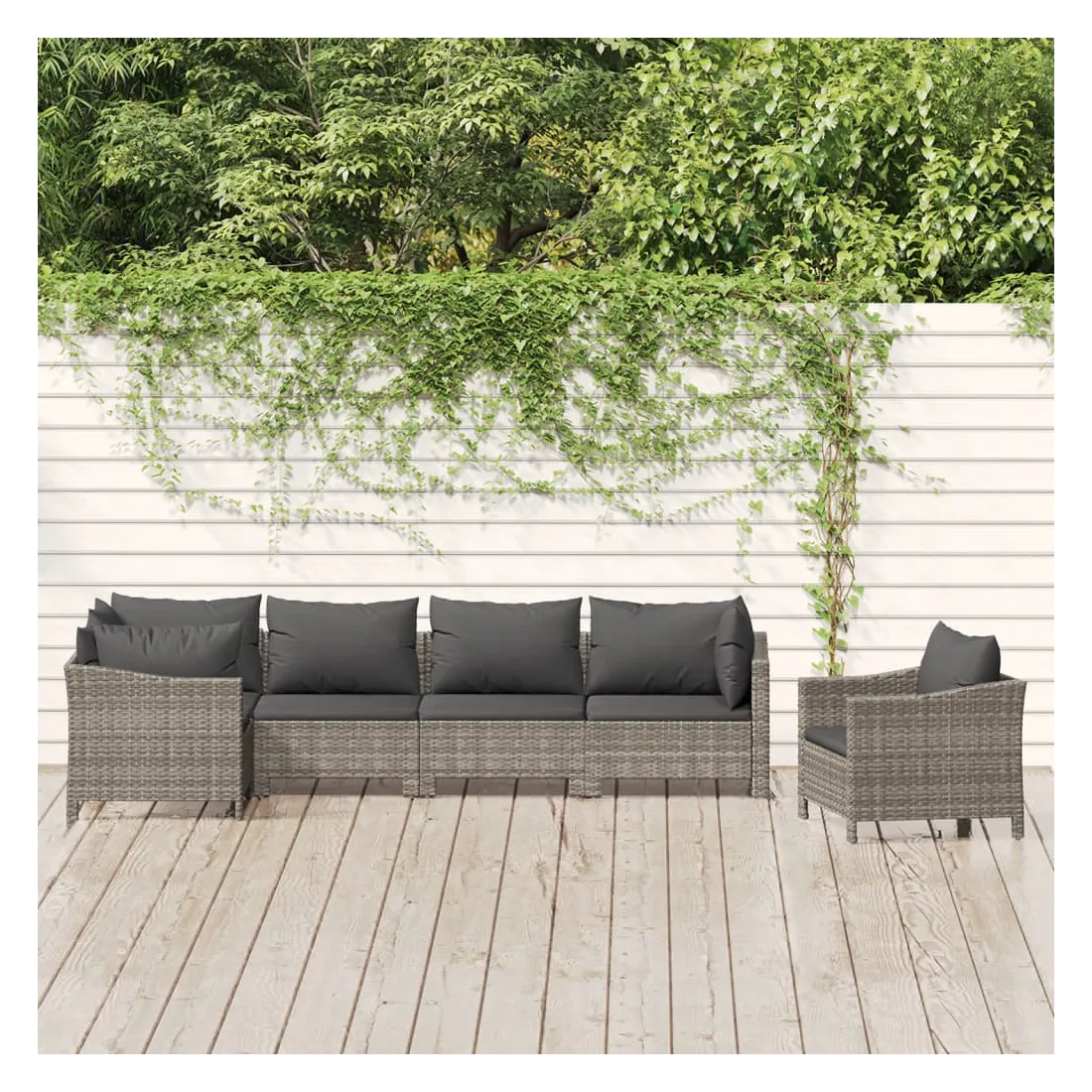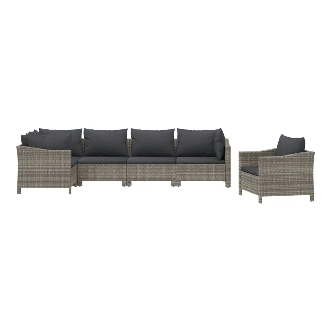 Cet ensemble de salon de jardin tendance, au design élégant et contemporain, est un excellent choix pour vous détendre dans votre jardin. Matériau durable : la résine tressée, également connue sous le nom de rotin poly, résiste aux intempéries et est facile à nettoyer. Elle reste belle à l'extérieur pendant une longue période. Elle est plus économique que d'autres matériaux, tout en offrant une excellente qualité, une commodité et un aspect esthétique.Cadre stable : l'acier est un matériau exceptionnellement dur et résistant. Il offre robustesse et stabilité. Le revêtement en poudre sur l'acier crée une couche protectrice contre l'usure.Conception modulaire : chaque pièce est facile à déplacer, ce qui vous permet de créer facilement différents agencements adaptés à vos besoins. Vous pouvez également trouver les pièces individuelles dans notre boutique en ligne pour arranger vos propres modèles de meubles.Expérience de siège confortable : avec les coussins de siège et de dossier bien rembourrés, l'ensemble de salon d'extérieur est très confortable. Bon à savoir :Pour faciliter au maximum le montage, chaque produit est livré avec des instructions. Remarque :Pour que vos meubles d'extérieur restent beaux, nous vous recommandons de les protéger avec une housse imperméable.