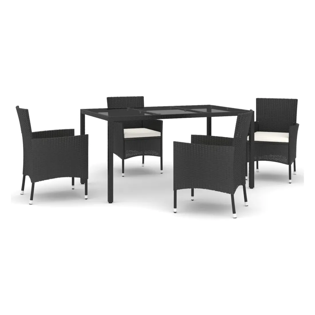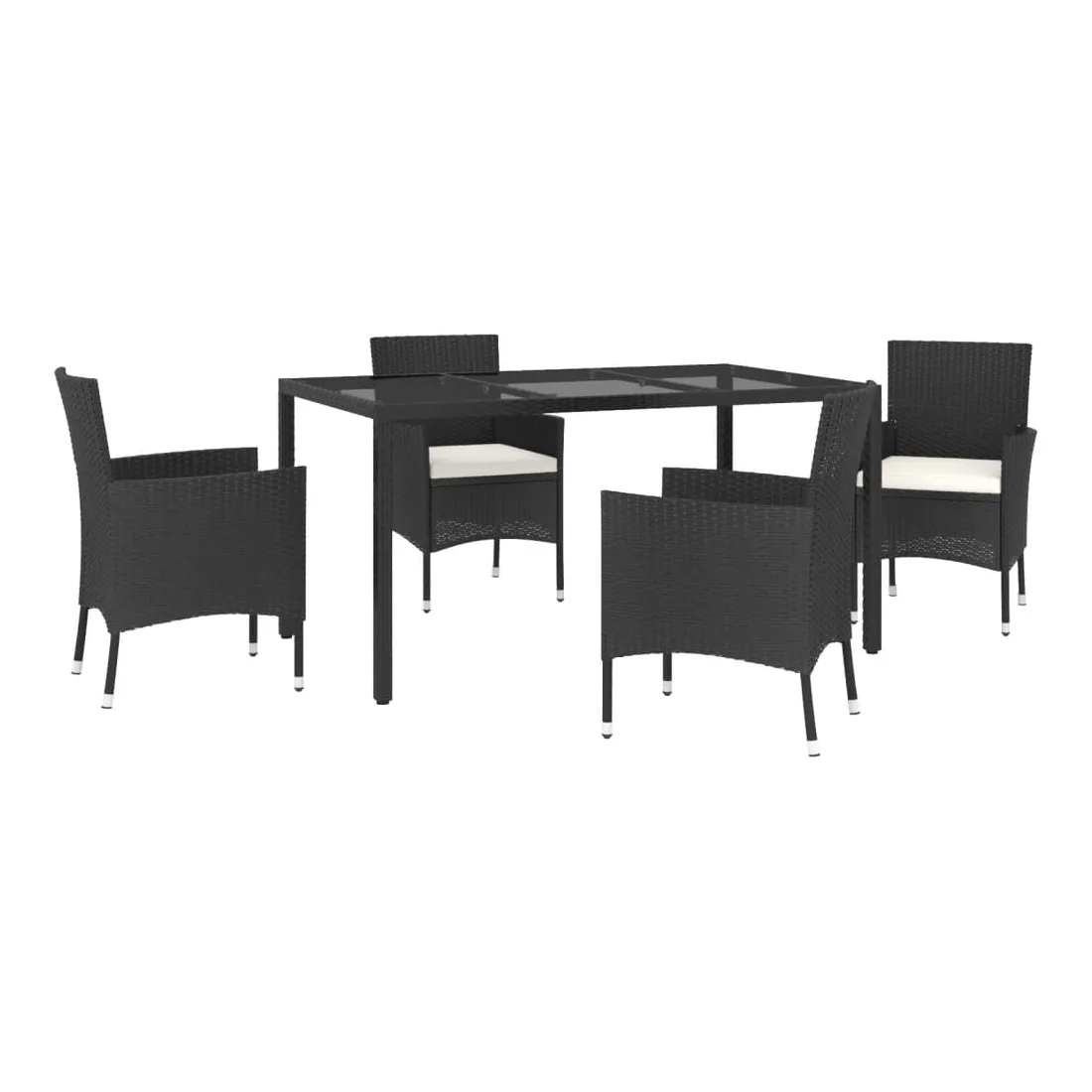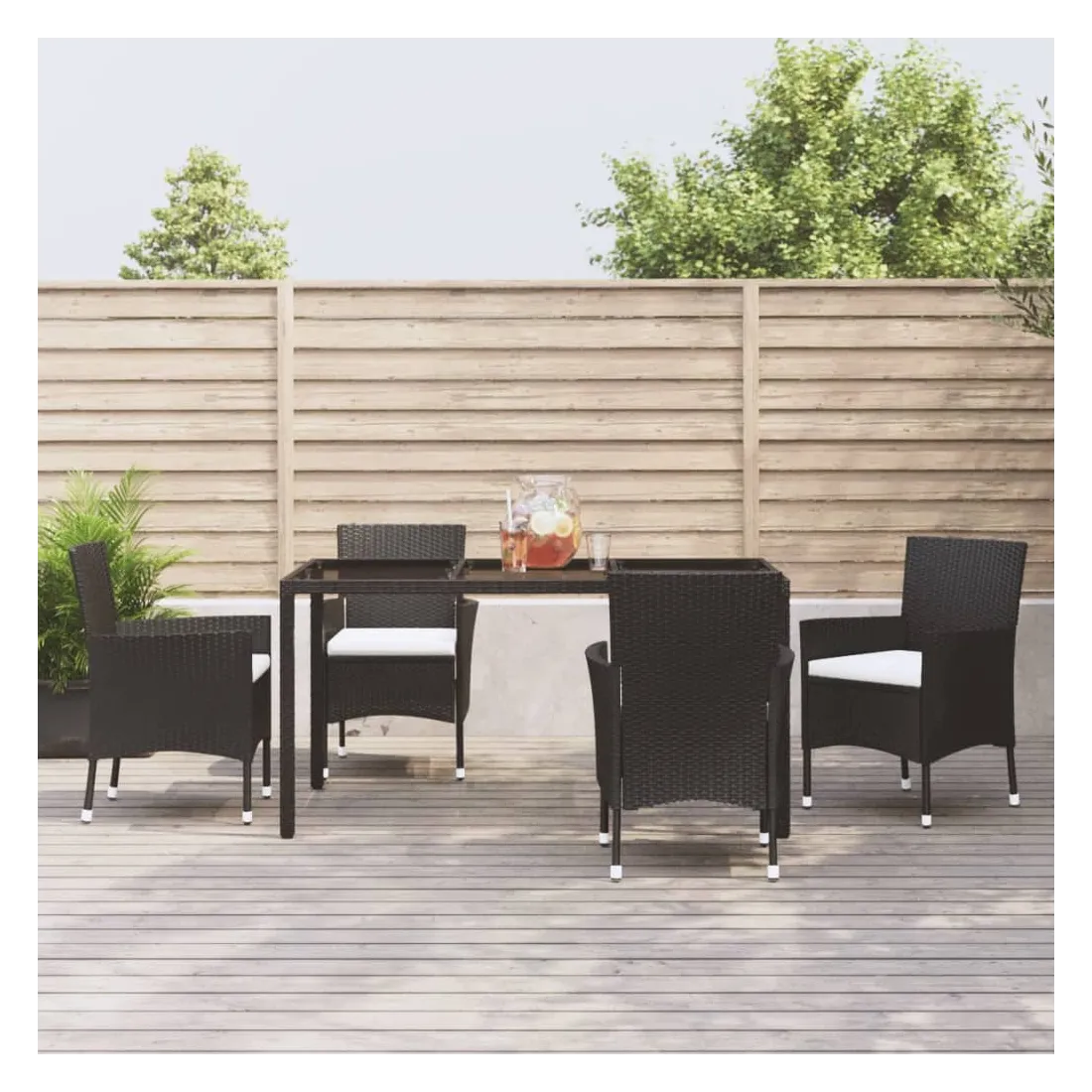 Cet ensemble élégant de salle à manger de jardin vous permet de passer des moments agréables et confortables avec votre famille et vos amis. Matériau résistant aux intempéries : la résine tressée, également connue sous le nom de rotin poly, résiste aux intempéries et est facile à nettoyer. Elle reste belle à l'extérieur pendant une longue période. Elle offre une excellente qualité, commodité et un aspect esthétique. Cadre robuste et stable : le cadre en acier enduit de poudre de l'ensemble à manger assure robustesse et stabilité. Expérience d'assise confortable : les coussins bien rembourrés des chaises à manger offrent un confort ultime pour votre temps d'assise.Table pratique : le dessus lisse de la table de salle à manger est en verre trempé, facile à nettoyer avec un chiffon humide. De plus, le dessus robuste est parfait pour placer des repas, des boissons et d'autres objets décoratifs.Conception flexible : grâce à la construction légère, ces chaises à dîner de jardin sont faciles à déplacer. Remarque :Pour que vos meubles d'extérieur restent beaux, nous vous recommandons de les protéger avec une housse imperméable.