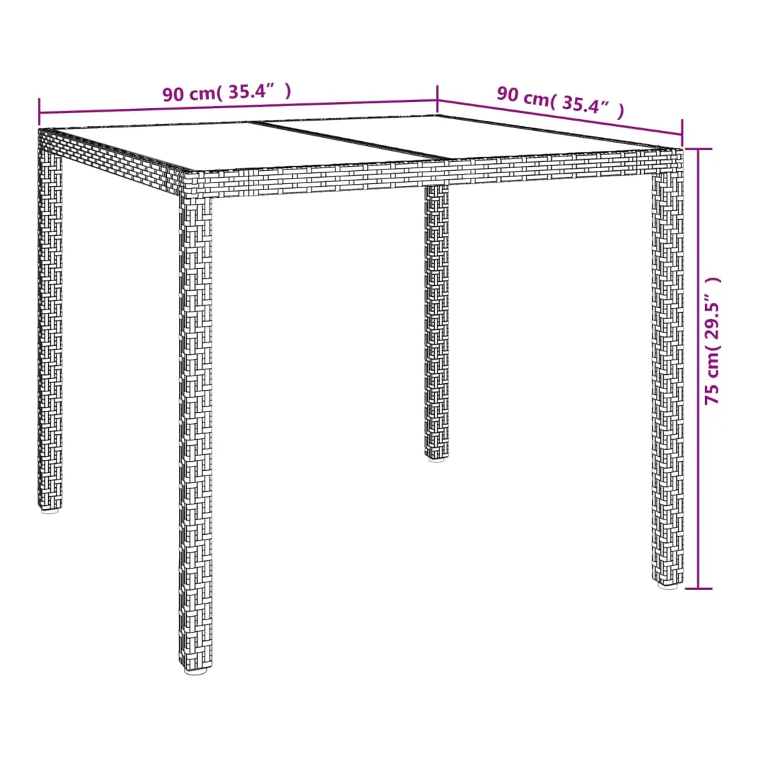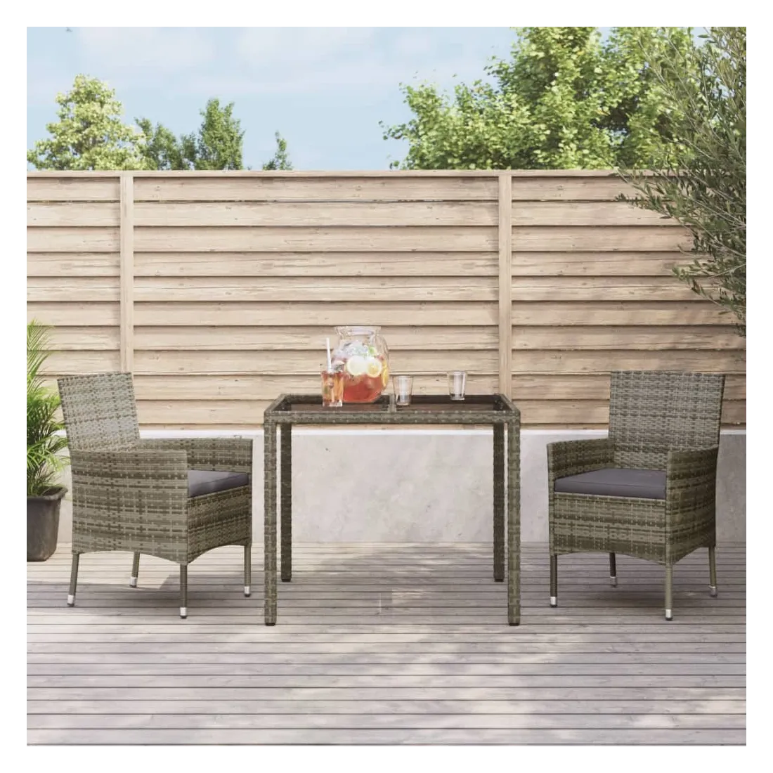 Cet ensemble élégant de salle à manger de jardin vous permet de passer des moments agréables et confortables avec votre famille et vos amis. Matériau résistant aux intempéries : la résine tressée, également connue sous le nom de rotin poly, résiste aux intempéries et est facile à nettoyer. Elle reste belle à l'extérieur pendant une longue période. Elle offre une excellente qualité, commodité et un aspect esthétique. Cadre robuste et stable : le cadre en acier enduit de poudre de l'ensemble à manger assure robustesse et stabilité. Expérience d'assise confortable : les coussins bien rembourrés des chaises à manger offrent un confort ultime pour votre temps d'assise.Table pratique : le dessus lisse de la table de salle à manger est en verre trempé, facile à nettoyer avec un chiffon humide. De plus, le dessus robuste est parfait pour placer des repas, des boissons et d'autres objets décoratifs.Conception flexible : grâce à la construction légère, ces chaises à dîner de jardin sont faciles à déplacer. Remarque :Pour que vos meubles d'extérieur restent beaux, nous vous recommandons de les protéger avec une housse imperméable.