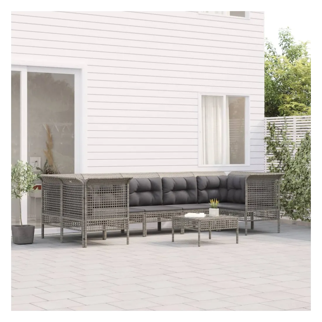 Profitez d'un moment de café confortable dans votre espace extérieur avec cet ensemble de salon de jardin ! C'est un complément parfait à votre jardin et à votre terrasse, créant une impression durable ! Matériau résistant aux intempéries : la résine tressée, également connue sous le nom de rotin poly, résiste aux intempéries et est facile à nettoyer. Elle reste belle à l'extérieur pendant une longue période. Elle offre une excellente qualité, commodité et un aspect esthétique.Cadre robuste : le cadre en acier enduit de poudre rend l'ensemble de salon d'extérieur robuste et stable pour une utilisation quotidienne à l'extérieur.Expérience d'assise confortable : les dossiers ajoutent un confort d'assise supplémentaire pour l'ensemble de salon de terrasse. De plus, les coussins bien rembourrés offrent du confort pendant votre temps d'assise.Conception modulaire : chaque article est flexible et facile à déplacer, vous pouvez donc la combiner avec d'autres segments modulaires dans la boutique en ligne pour créer vos propres configurations de salon de jardin ! Remarque :Pour que vos meubles d'extérieur restent beaux, nous vous recommandons de les protéger avec une housse imperméable.