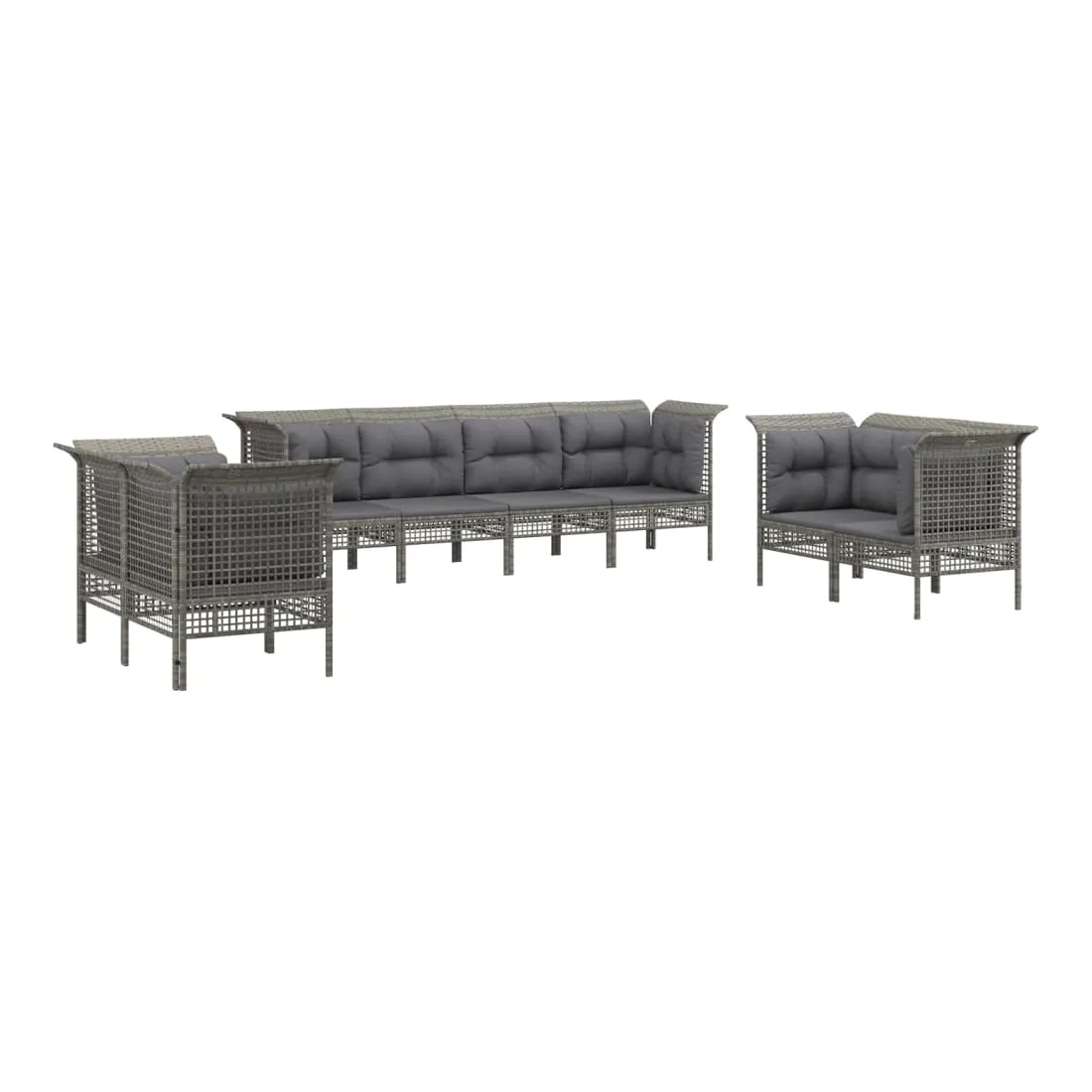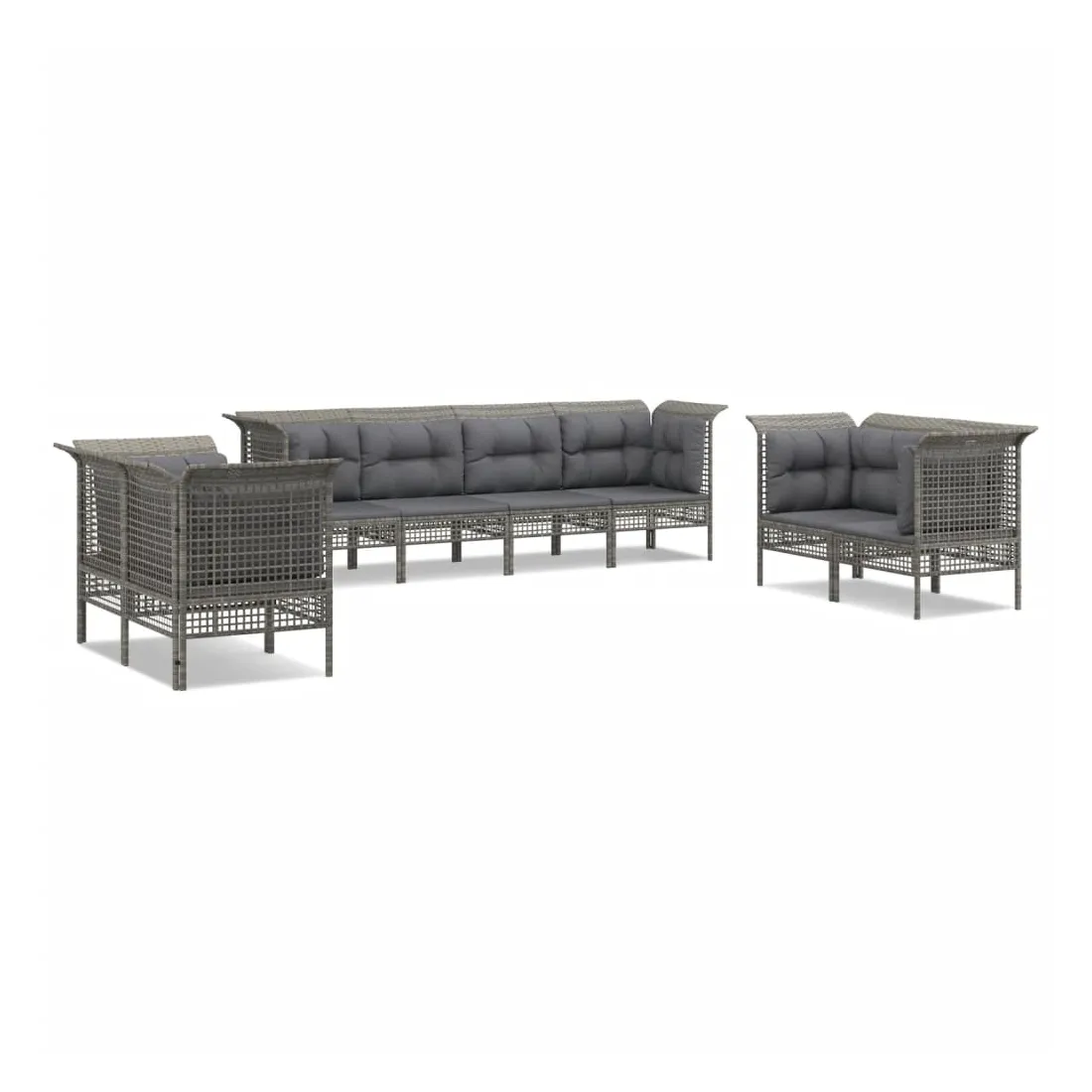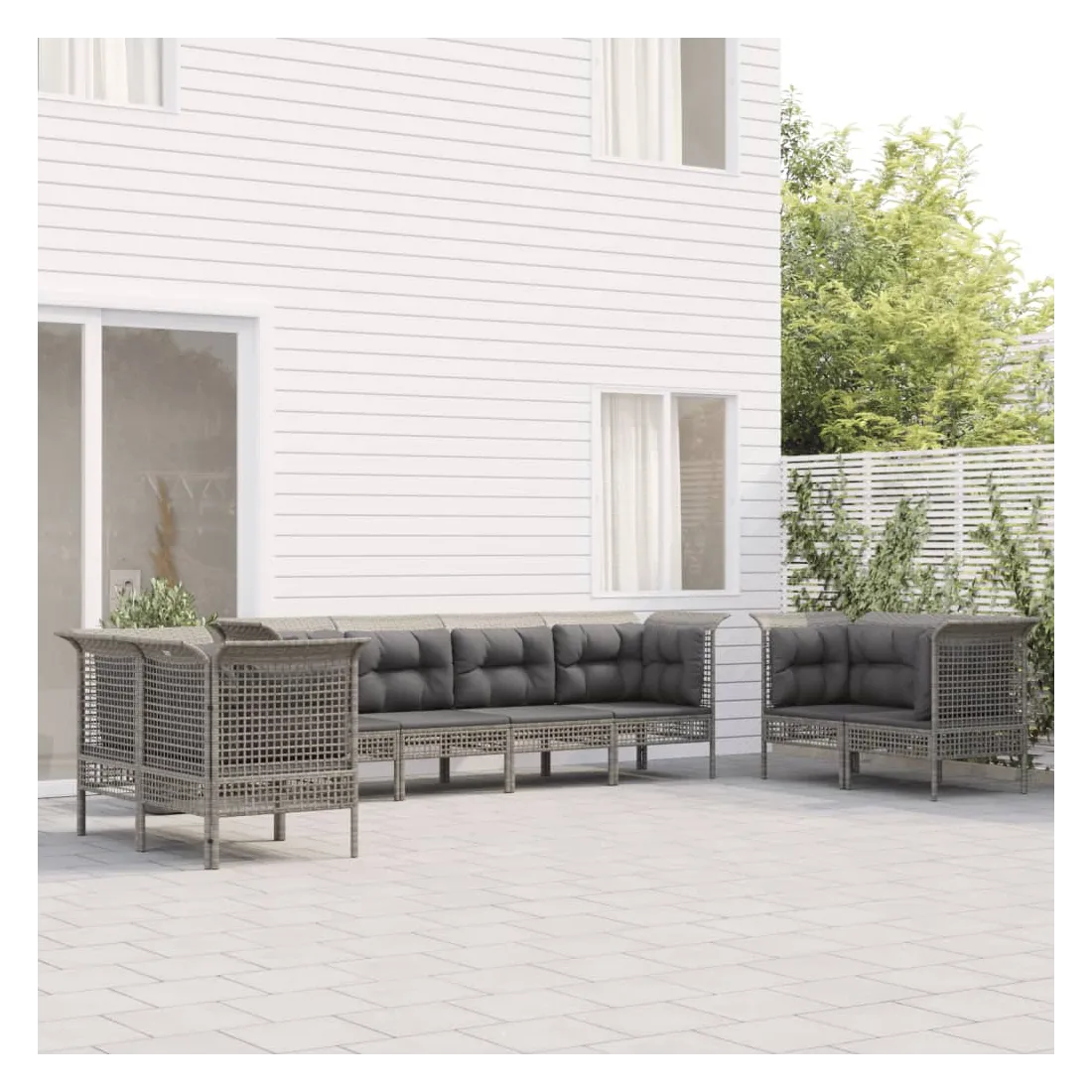 Salon de jardin 8 pcs avec coussins Gris Résine tressée