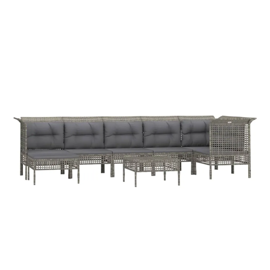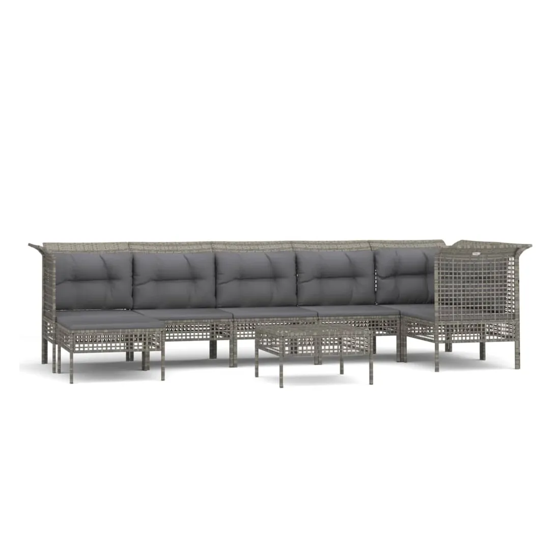 Salon de jardin 8 pcs avec coussins Gris Résine tressée