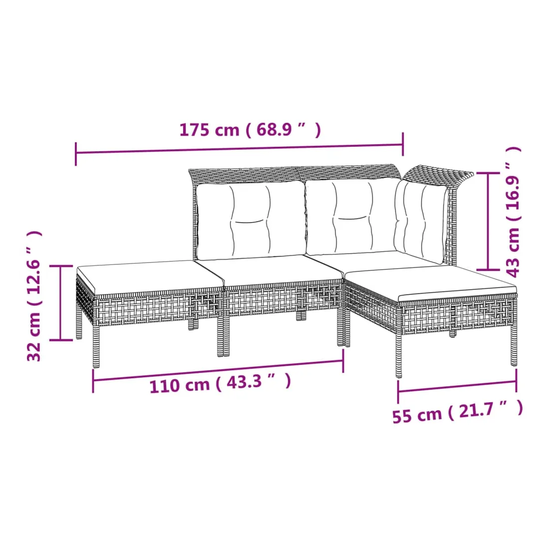 Profitez d'un moment de café confortable dans votre espace extérieur avec cet ensemble de salon de jardin ! C'est un complément parfait à votre jardin et à votre terrasse, créant une impression durable ! Matériau résistant aux intempéries : le poly rotin est résistant aux intempéries et facile à nettoyer. Il reste beau à l'extérieur pendant une longue période de temps. Il est plus économique que d'autres matériaux, tout en offrant une excellente qualité, une commodité et un aspect esthétique.Cadre robuste et stable : le cadre en acier de l'ensemble de salon assure robustesse et stabilité.Expérience d'assise confortable : le dossier ajoute un confort d'assise supplémentaire pour l'ensemble de salon. De plus, les coussins bien rembourrés offrent un confort pour votre temps d'assise.Conception modulaire : l'ensemble de salon de jardin est flexible et facile à déplacer, vous pouvez donc le combiner avec d'autres segments modulaires de la boutique en ligne pour créer vos propres configurations personnelles de salon de jardin ! Remarque :Pour que vos meubles d'extérieur restent beaux, nous vous recommandons de les protéger avec une housse imperméable.