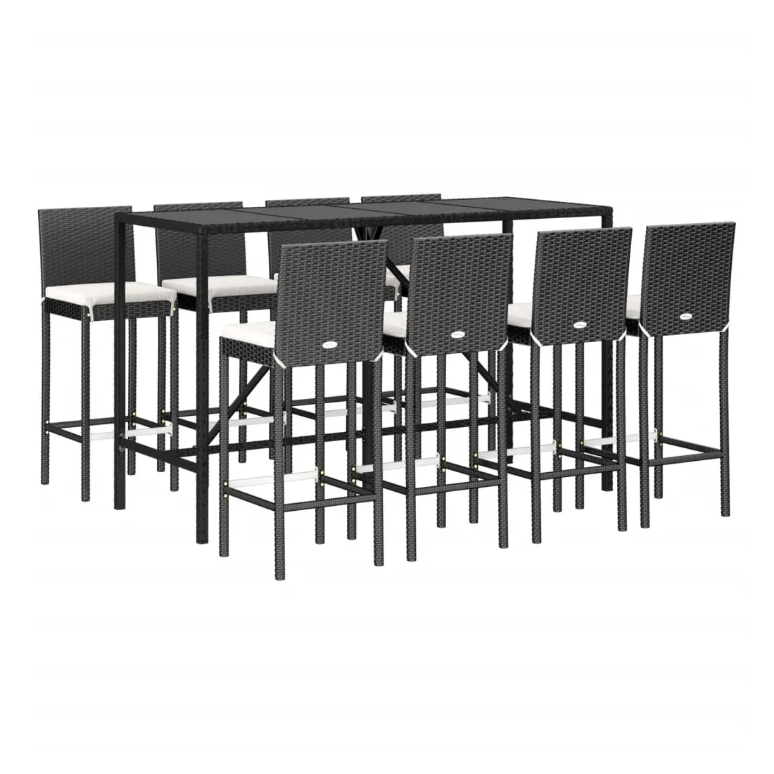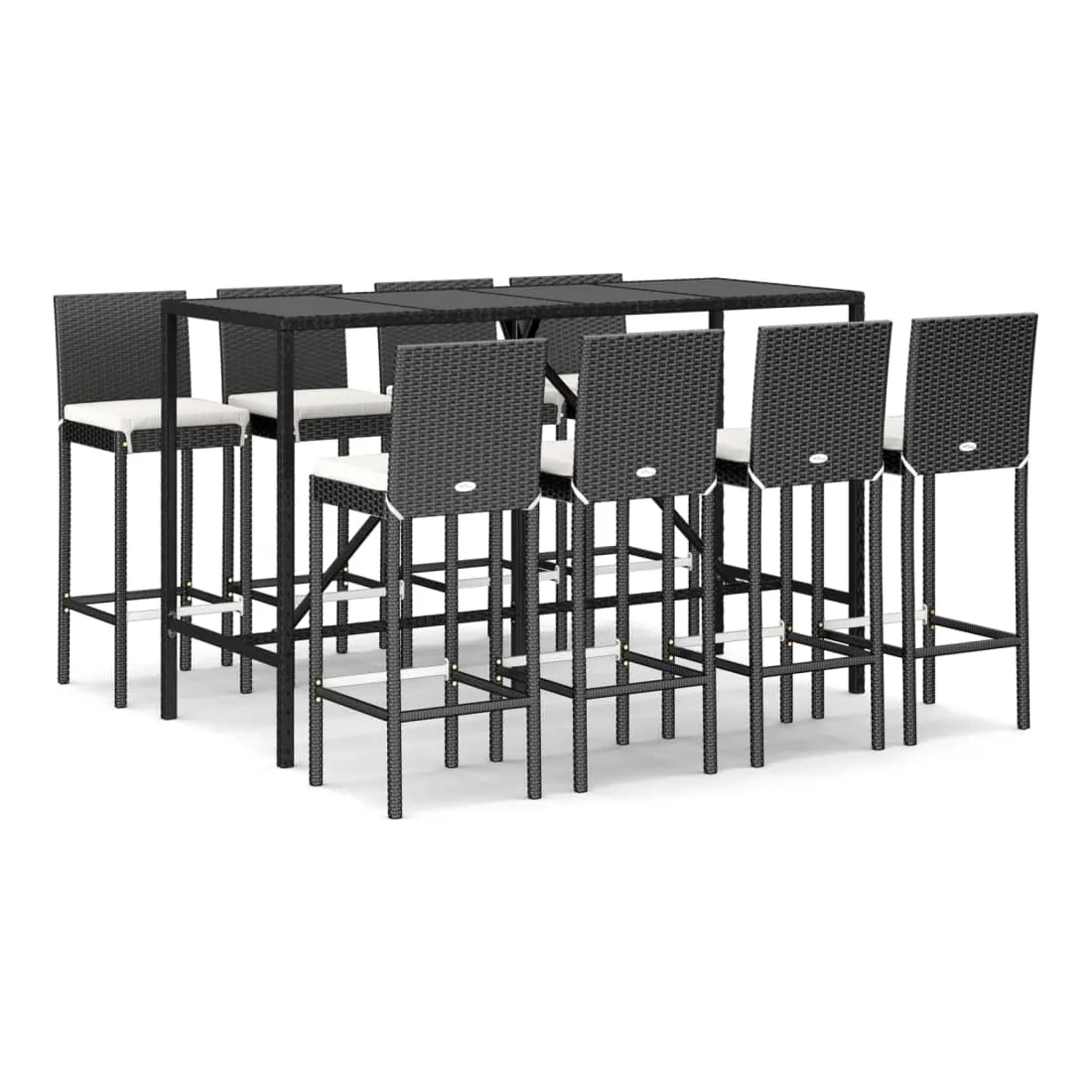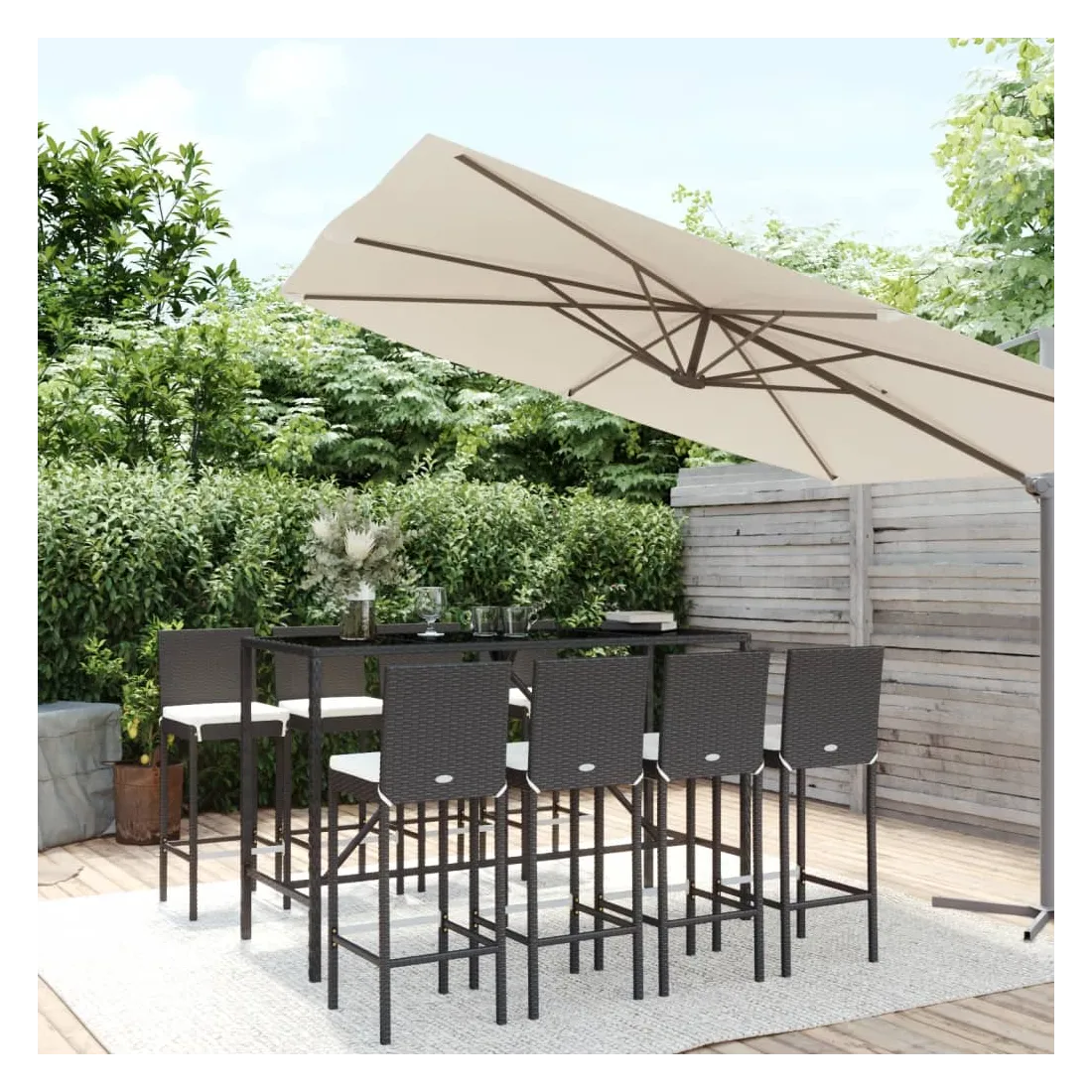 Cet ensemble de bar de jardin tendance, combinant à la fois style et fonctionnalité, est sûrement destiné à être la pièce maîtresse de votre jardin, terrasse et de tout autre espace de vie. Matériau résistant aux intempéries : la résine tressée, également connue sous le nom de rotin poly, résiste aux intempéries et est facile à nettoyer. Elle reste belle à l'extérieur pendant une longue période. Elle offre une excellente qualité, commodité et un aspect esthétique.Assise confortable : le tabouret de bar est conçu avec un dossier et un repose-pieds intégré pour vous offrir une assise confortable. Le coussin de siège bien rembourré offre un confort ultime pendant votre temps assis.Dessus en verre trempé : le dessus est en verre trempé, ce qui le rend facile à nettoyer. De plus, il offre un excellent support pour placer vos boissons, collations et vos décorations préférées.Cadre robuste et stable : les cadres en acier enduit de poudre rendent l'ensemble de pub robuste et stable pour une utilisation quotidienne à l'extérieur.Applications larges : la table et le tabouret de bar, avec leur design remarquable, créent un aspect général agréable qui s'intègre sans effort dans n'importe quel décor. Bon à savoir :Pour faciliter au maximum le montage, chaque produit est livré avec des instructions.Remarque :Pour que vos meubles d'extérieur restent beaux, nous vous recommandons de les protéger avec une housse imperméable.
