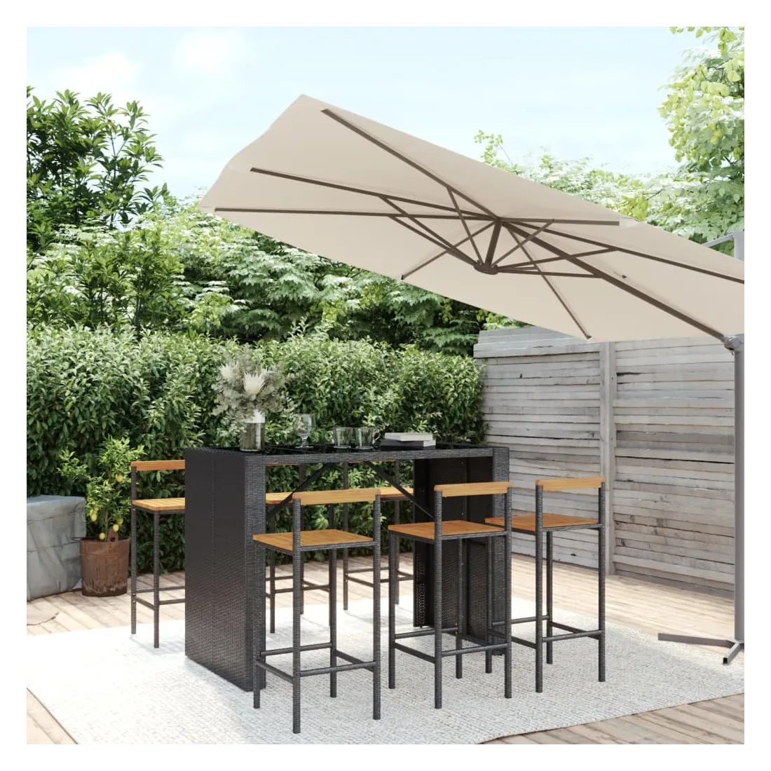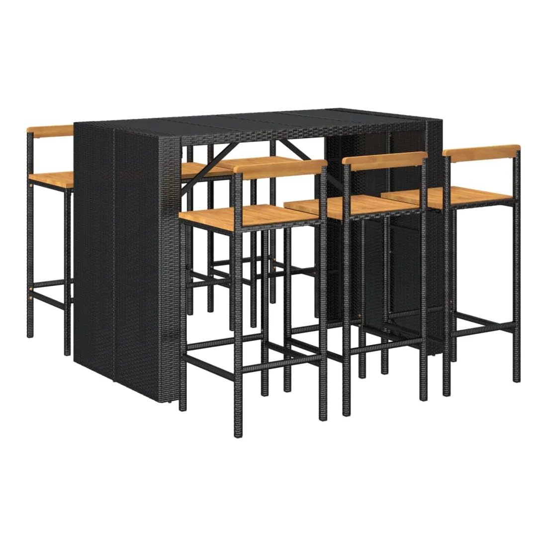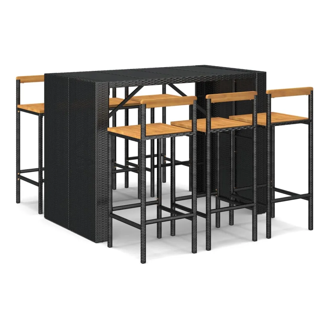 Ensemble de bar jardin 7 pcs noir poly rotin/bois massif acacia