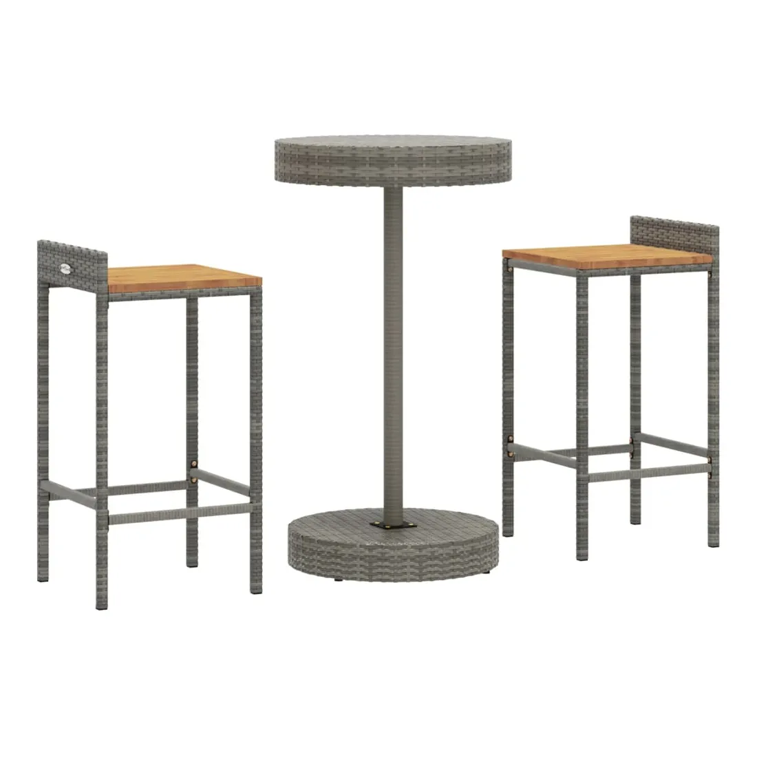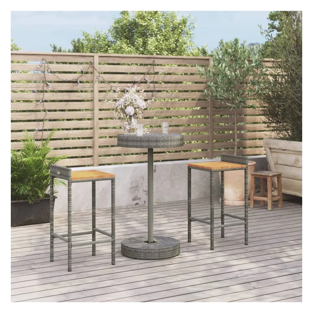 Cet ensemble de bar de jardin tendance, combinant à la fois style et fonctionnalité, est sûrement destiné à être la pièce maîtresse de votre jardin, terrasse et de tout autre espace de vie. Matériau résistant aux intempéries : la résine tressée, également connue sous le nom de rotin poly, résiste aux intempéries et est facile à nettoyer. Elle reste belle à l'extérieur pendant une longue période. Elle offre une excellente qualité, commodité et un aspect esthétique.Assise confortable : le tabouret de bar est conçu avec un repose-pied intégré pour vous offrir une expérience d'assise confortable. L'assise en bois confère au tabouret un aspect naturel et agréable tout en assurant sa stabilité.Table pratique : la table de bar ronde est idéale pour accueillir vos boissons, vos snacks et vos décorations préférées.Cadre robuste et stable : les cadres en acier enduit de poudre rendent l'ensemble de pub robuste et stable pour une utilisation quotidienne à l'extérieur.Applications larges : la table et les tabourets de bar, avec leur design remarquable, créent un aspect général agréable qui s'intègre sans effort dans n'importe quel décor. Bon à savoir :Pour faciliter au maximum le montage, chaque produit est livré avec des instructions.Remarque :Pour que vos meubles d'extérieur restent beaux, nous vous recommandons de les protéger avec une housse imperméable.
