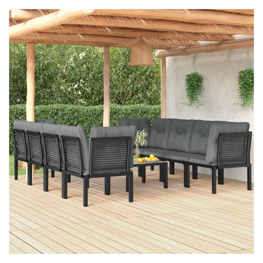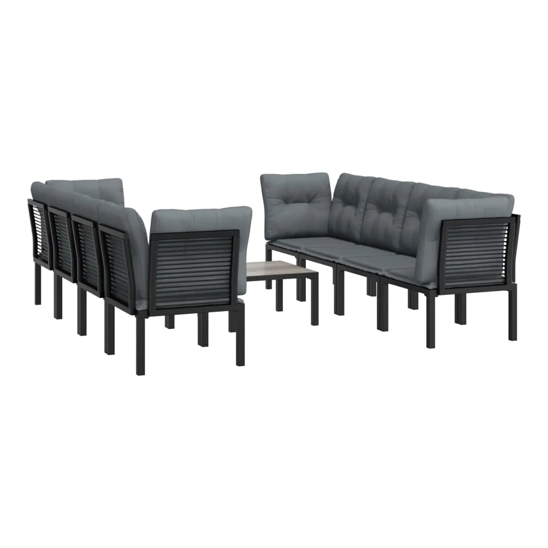 Cet ensemble de salon de jardin tendance, au design élégant et contemporain, est un choix parfait pour vous détendre dans votre jardin. Matériau résistant aux intempéries : la résine tressée, également connue sous le nom de rotin poly, résiste aux intempéries et est facile à nettoyer. Elle reste belle à l'extérieur pendant une longue période. Elle offre une excellente qualité, commodité et un aspect esthétique. Cadre robuste et stable : le cadre en acier enduit de poudre de l'ensemble de salon garantit la robustesse et la stabilité.Expérience d'assise confortable : le dossier ajoute un confort d'assise supplémentaire à la chaise. De plus, les coussins bien rembourrés vous permettent de vous asseoir confortablement.Conception modulaire : le salon d'extérieur est flexible et facile à déplacer, vous pouvez donc le combiner avec d'autres segments modulaires dans la boutique en ligne pour créer vos propres configurations d'ensemble de salon de jardin !Table pratique : le dessus robuste de la table basse de jardin est parfait pour placer des repas, des boissons et d'autres objets décoratifs. Bon à savoir :Pour faciliter au maximum le montage, chaque produit est livré avec des instructions.Remarque :Pour que vos meubles d'extérieur restent beaux, nous vous recommandons de les protéger avec une housse imperméable.