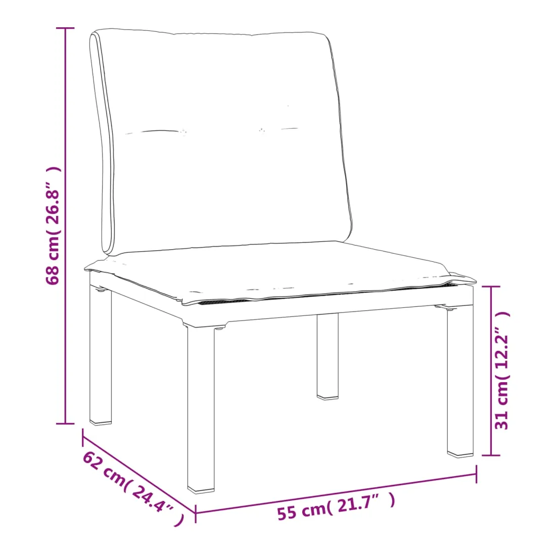 - Dimensions du coussin de siège : 55 x 55 x 3,5 cm (L x l x é)