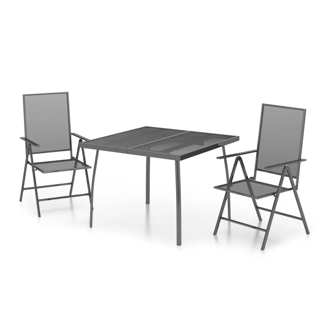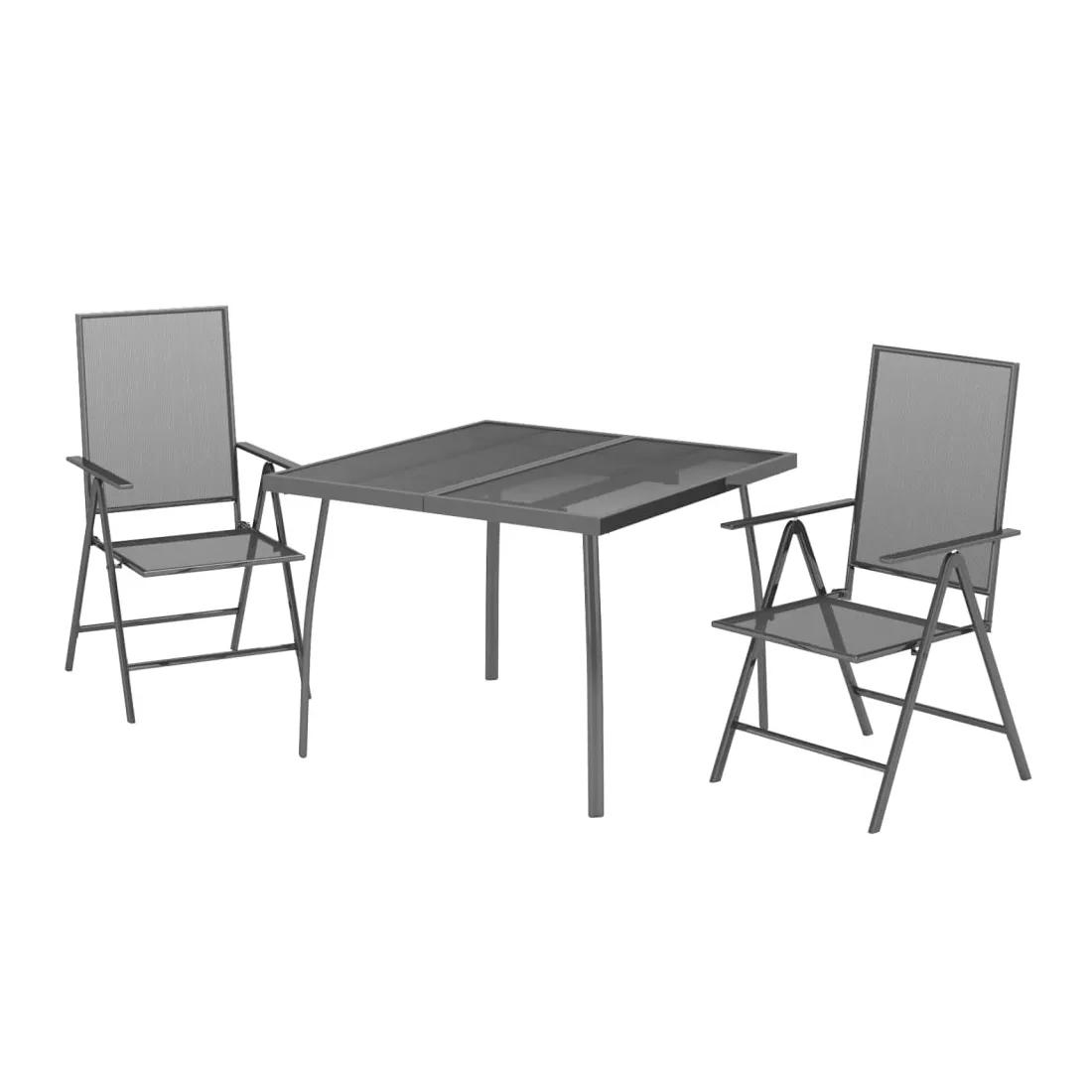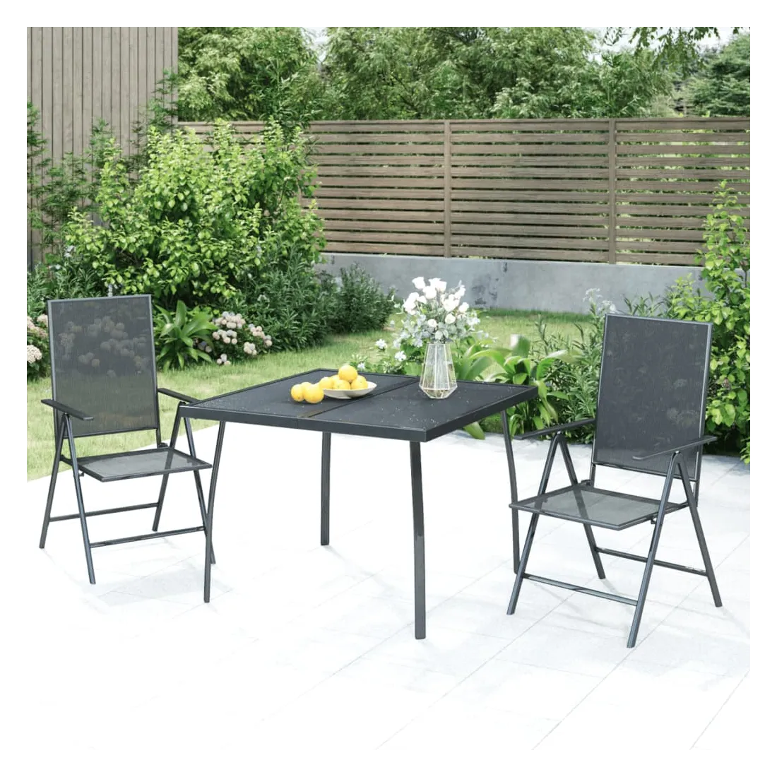 Cet ensemble de salle à manger de jardin tendance, au design élégant et contemporain, est un choix parfait pour vous détendre dans votre jardin. Matériau robuste : l'acier est un matériau exceptionnellement dur et solide. Il offre robustesse et stabilité. Le revêtement par poudre et le revêtement électronique de l'acier créent une couche protectrice contre l'usure et la corrosion.Cadre stable : le cadre en acier enduit de poudre et e-coated assure la robustesse et la stabilité de l'ensemble de salle à manger.Fonction réglable et pliable : les dossiers des chaises de salle à manger sont réglables en 6 positions selon votre confort. Vous pouvez les replier pour économiser de l'espace lorsqu'ils ne sont pas utilisés.Table pratique : le dessus robuste de la table à manger est parfait pour placer des repas, des boissons et d'autres objets décoratifs.Design en maille : l'ensemble de salle à manger d'extérieur avec un design en maille a un aspect simple et intemporel et convient aux balcons, porches, jardins, terrasses, etc. Remarque :Pour que vos meubles d'extérieur restent beaux, nous vous recommandons de les protéger avec une housse imperméable.
