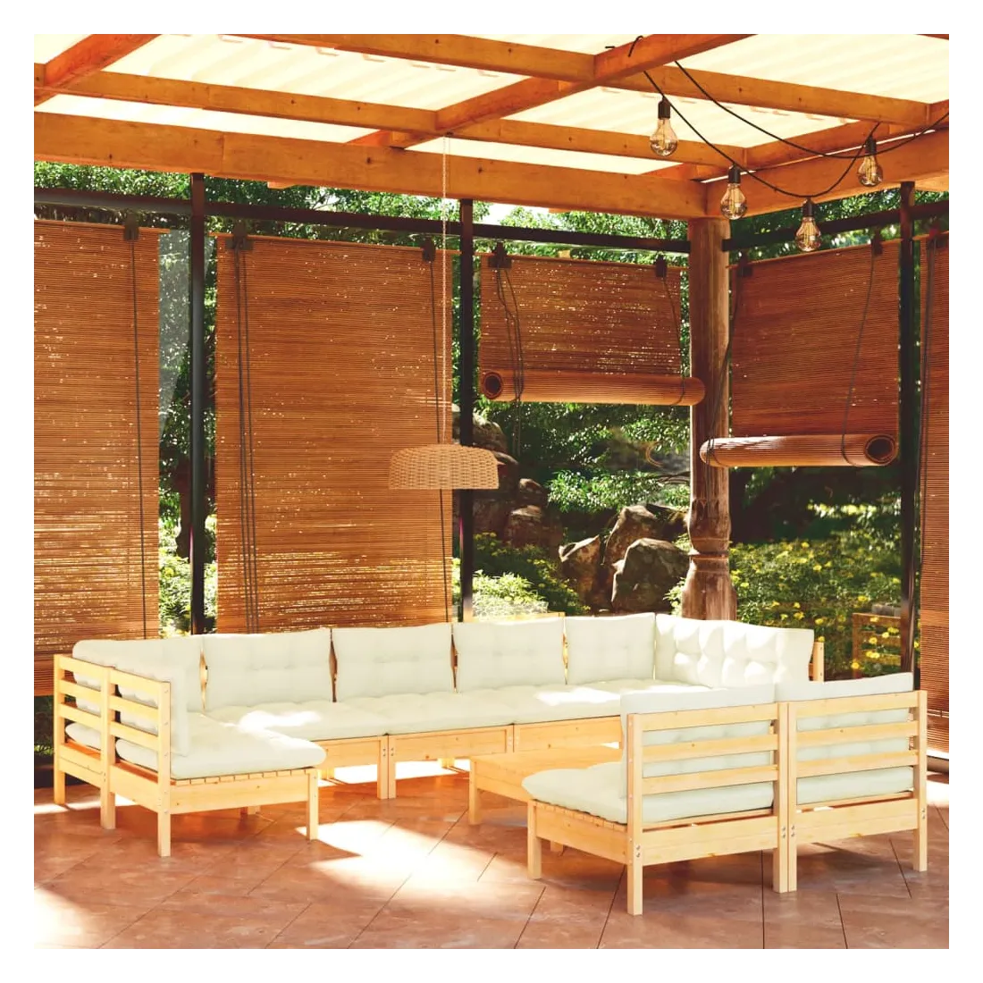 Ce salon de jardin est un excellent choix pour vous détendre et profiter du beau temps, faire une sieste ou discuter avec votre famille ou vos amis. Le salon de patio est fabriqué en bois de pin massif, ce qui le rend robuste et stable. Les coussins ajoutent un confort supplémentaire. Vous pouvez le combiner avec d’autres segments modulaires pour créer vos propres configurations de salon de jardin ! Remarque : afin de prolonger la durée de vie des meubles d'extérieur, nous vous recommandons de les protéger avec une housse imperméable.