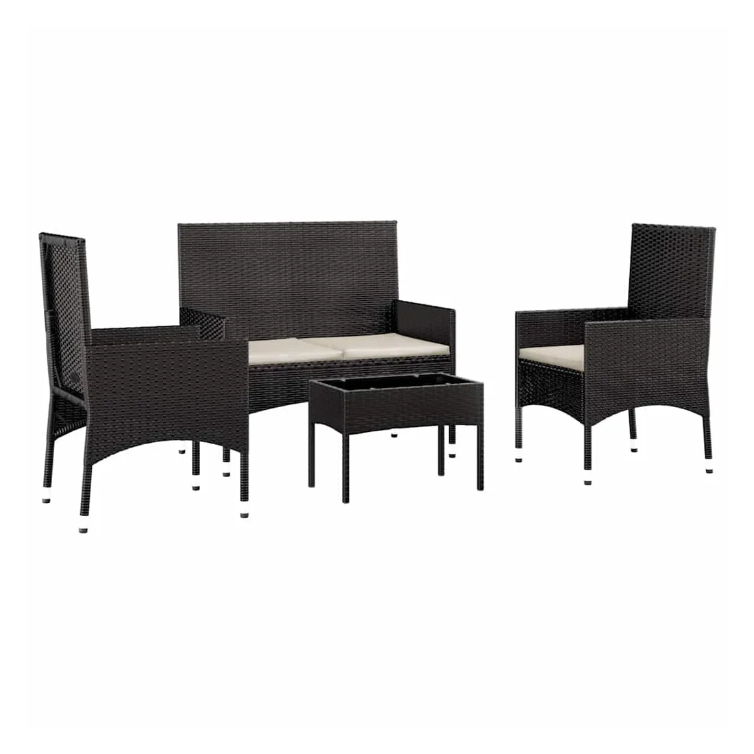 Salon de jardin 4 pcs avec coussins Noir Résine tressée