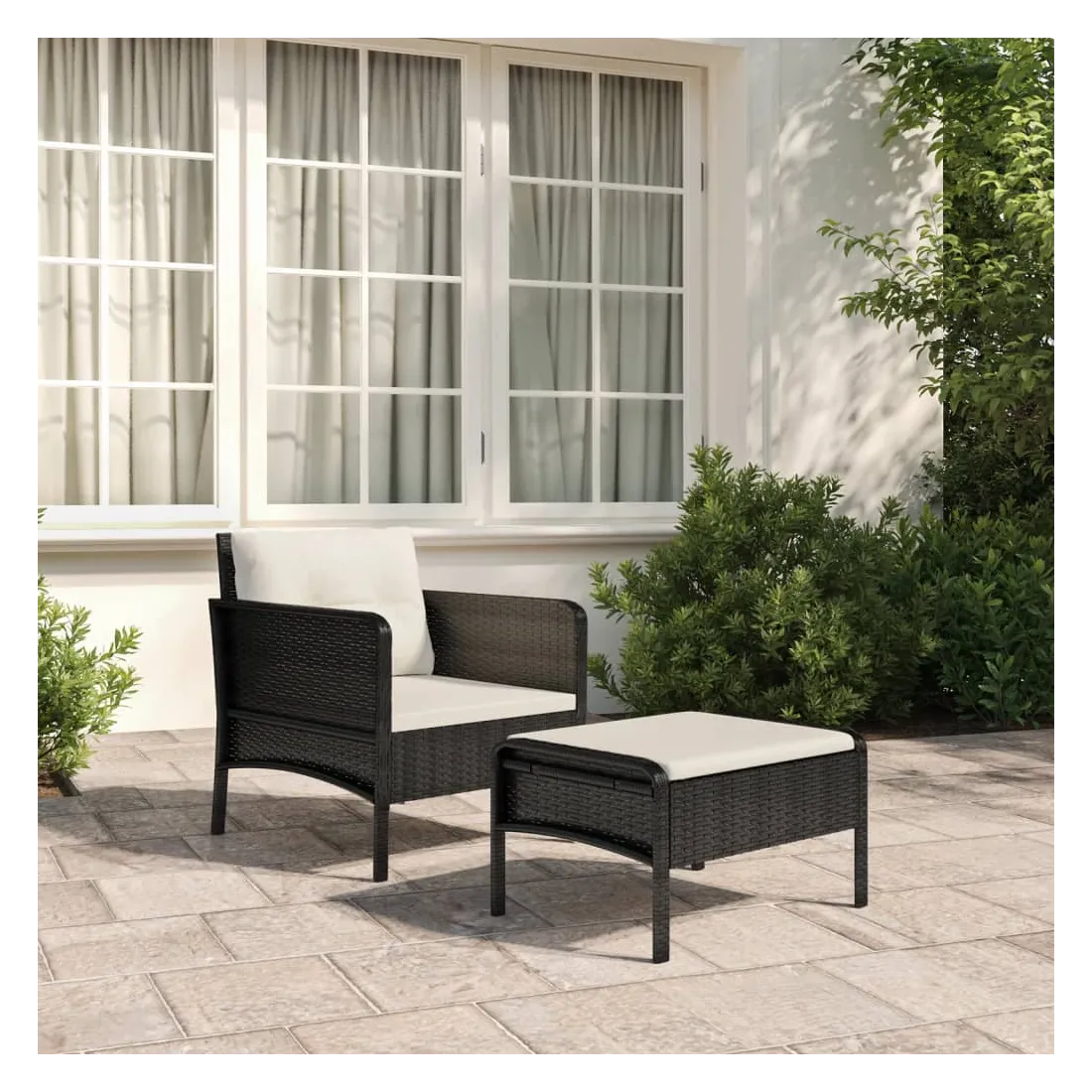Profitez d'un moment de café confortable dans votre espace extérieur avec cet ensemble de salon de jardin ! C'est un complément parfait à votre jardin et à votre terrasse, créant une impression durable ! Matériau haut de gamme : la résine tressée est un matériau de résistance exceptionnelle et durable dans différentes conditions météorologiques.Cadre métallique : le cadre en métal assure la solidité et la stabilité de l'ensemble de salon d'extérieur.Coussins moelleux : les coussins épais et amovibles du salon de jardin sont inclus pour offrir le plus grand confort d'assise.Accoudoir et dossier confortables : les accoudoirs et le dossier ronds permettent à vos bras et à votre dos de se reposer confortablement.Tabouret pratique : vous pouvez vous détendre et y mettre vos pieds grâce au tabouret inclus. Vous pouvez également placer le tabouret n'importe où, selon vos préférences. Remarque :Chaque produit est livré avec un manuel de montage dans la boîte pour un montage facile.Afin de prolonger la durée de vie de votre mobilier d'extérieur, nous vous recommandons de le protéger avec une housse imperméable.