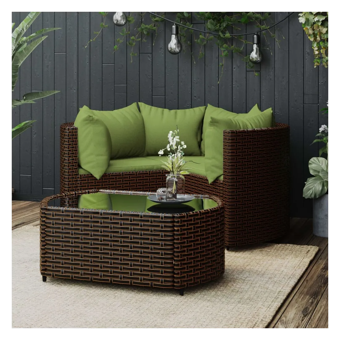 Cet ensemble de salon de jardin tendance, au design élégant et contemporain, est un excellent choix pour manger ou vous détendre dans votre jardin. Matériau résistant aux intempéries : la résine tressée, également connue sous le nom de rotin poly, résiste aux intempéries et est facile à nettoyer. Elle reste belle à l'extérieur pendant une longue période. Elle offre une excellente qualité, commodité et un aspect esthétique.Cadre robuste : les cadres en acier enduit de poudre rendent l'ensemble de salon d'extérieur robuste et stable pour une utilisation quotidienne à l'extérieur.Dessus de table pratique : le dessus lisse de la table de jardin est en verre trempé, facile à nettoyer avec un chiffon humide. De plus, le dessus robuste est parfait pour placer des repas, des boissons et d'autres objets décoratifs.Conception modulaire : l'ensemble de salon de jardin est flexible et facile à déplacer, vous pouvez donc le combiner avec d'autres segments modulaires dans la boutique en ligne pour créer vos propres configurations d'ensemble de salon de jardin !Expérience d'assise confortable : le dossier ajoute un confort d'assise supplémentaire au canapé de jardin. De plus, les coussins bien rembourrés offrent du confort pendant votre temps d'assise. Bon à savoir :Pour faciliter au maximum le montage, chaque produit est livré avec des instructions. Remarque :Le produit est conçu pour une utilisation à l'extérieur uniquement. Ne le rangez pas à l'intérieur.Pour que vos meubles d'extérieur restent beaux, nous vous recommandons de les protéger avec une housse imperméable.