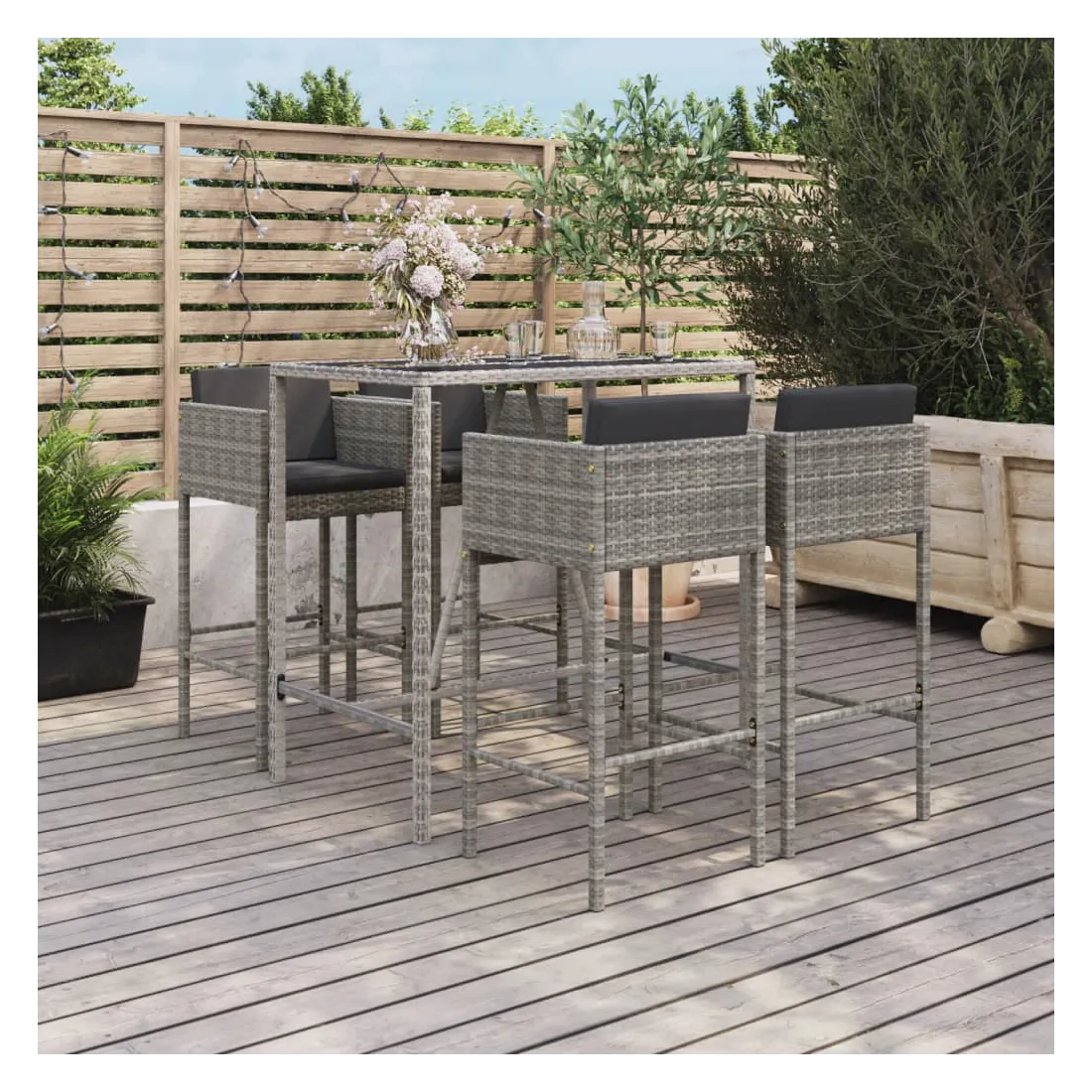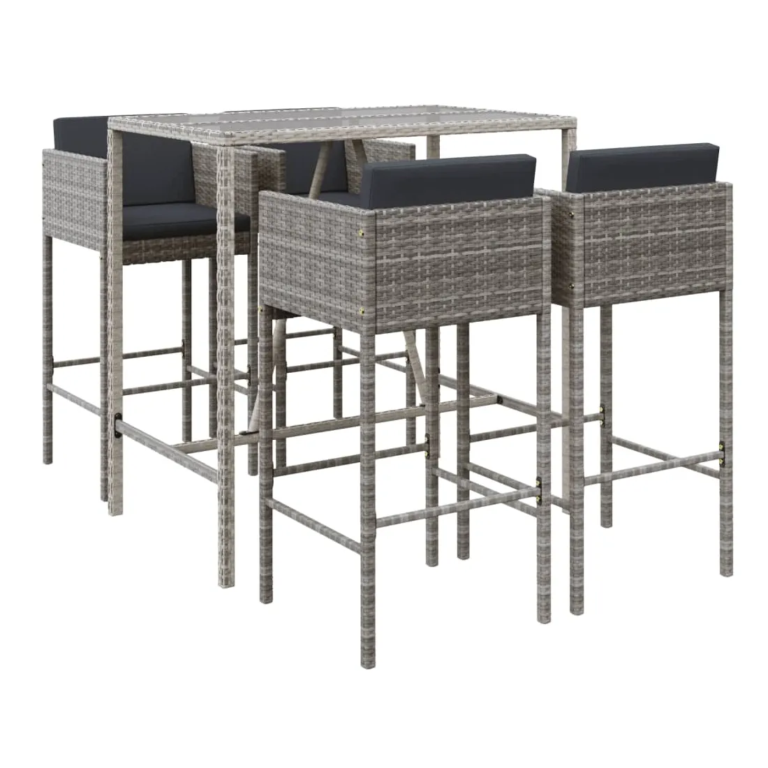 Ensemble de bar de jardin 5 pcs avec coussins gris poly rotin