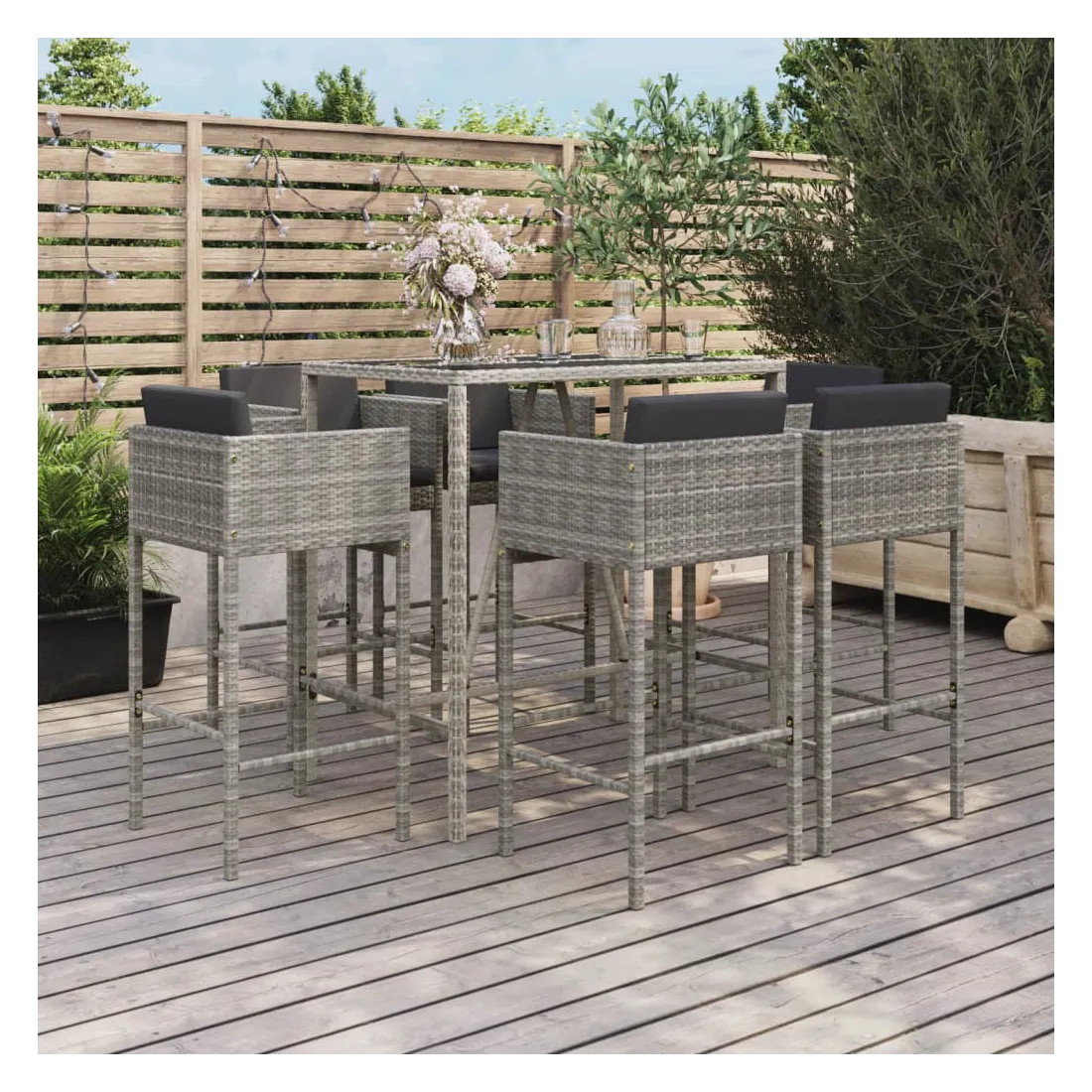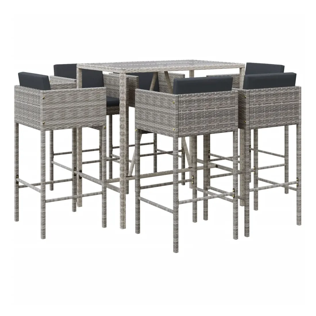 Ensemble de bar de jardin 7 pcs avec coussins gris poly rotin