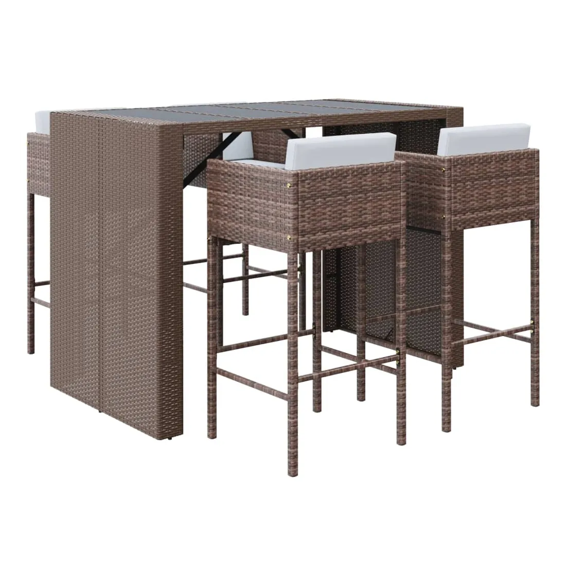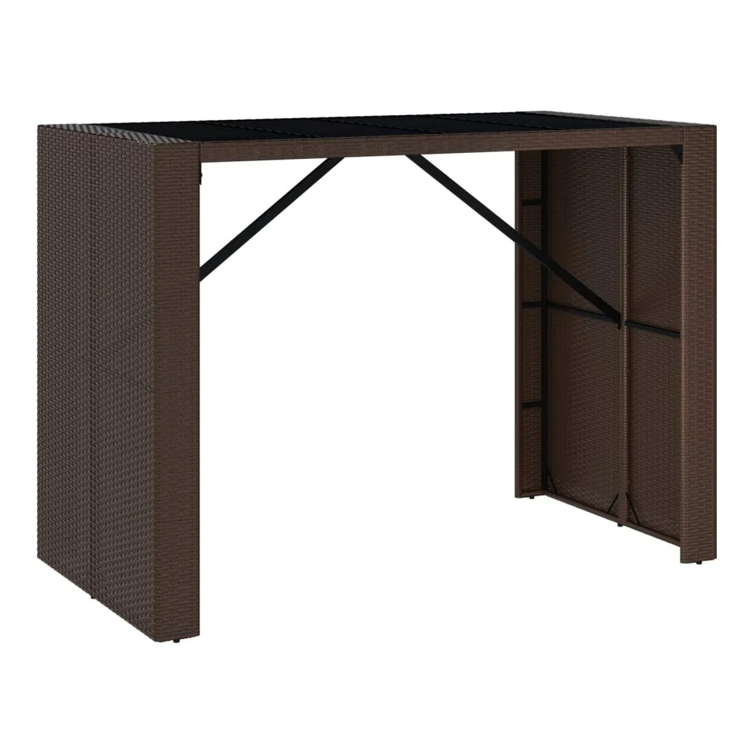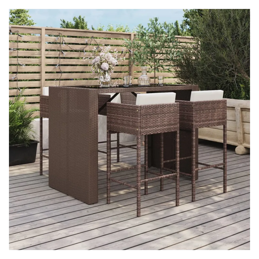 Cet ensemble de bar de jardin tendance, combinant à la fois style et fonctionnalité, est sûrement destiné à être la pièce maîtresse de votre jardin, terrasse et de tout autre espace de vie. Matériau résistant aux intempéries : la résine tressée, également connue sous le nom de rotin poly, résiste aux intempéries et est facile à nettoyer. Elle reste belle à l'extérieur pendant une longue période. Elle offre une excellente qualité, commodité et un aspect esthétique.Siège confortable : le tabouret de bar est conçu avec un repose-pied, un dossier et des accoudoirs pour vous offrir une expérience d'assise confortable. Les coussins souples du siège et du dossier ajoutent encore au confort.Dessus en verre trempé : le dessus est en verre trempé, ce qui le rend facile à nettoyer. De plus, il offre un excellent support pour placer vos boissons, collations et vos décorations préférées.Cadre robuste et stable : les cadres en acier enduit de poudre rendent l'ensemble de pub robuste et stable pour une utilisation quotidienne à l'extérieur.Applications larges : la table et les tabourets de bar, avec leur design remarquable, créent un aspect général agréable qui s'intègre sans effort dans n'importe quel décor. Bon à savoir :Pour que vos meubles d'extérieur restent beaux, nous vous recommandons de les protéger avec une housse imperméable.