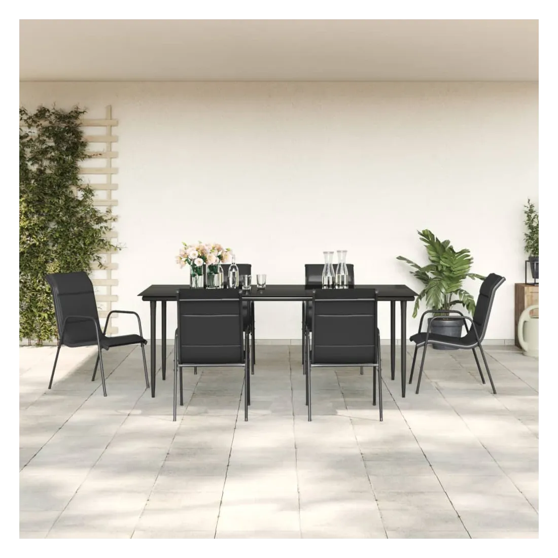 Profitez d'un bon repas ou d'un thé l'après-midi dans votre espace extérieur avec cet ensemble de salle à manger de jardin ! Ayant un design élégant, il deviendra le point central de votre jardin et de votre terrasse ! Cadre stable : les fauteuils et la table ont une construction en acier revêtu de poudre, ce qui les rend robustes et stables.Matériau durable : grâce au tissu textilène résistant avec rembourrage, ces chaises d'extérieur sont très confortables, résistantes aux intempéries et faciles à nettoyer.Dessus de table robustes : le dessus de table est en verre trempé, ce qui le rend facile à nettoyer. De plus, le dessus de table est parfait pour placer des collations, des boissons, des vases, des bols de fruits ou d'autres objets décoratifs.Expérience d'assise confortable : conçu avec un dossier et des accoudoirs incurvés, le fauteuil de jardin a une forme plus ergonomique pour un maximum de confort. Bon à savoir :Pour que vos meubles d'extérieur restent beaux, nous vous recommandons de les protéger avec une housse imperméable.