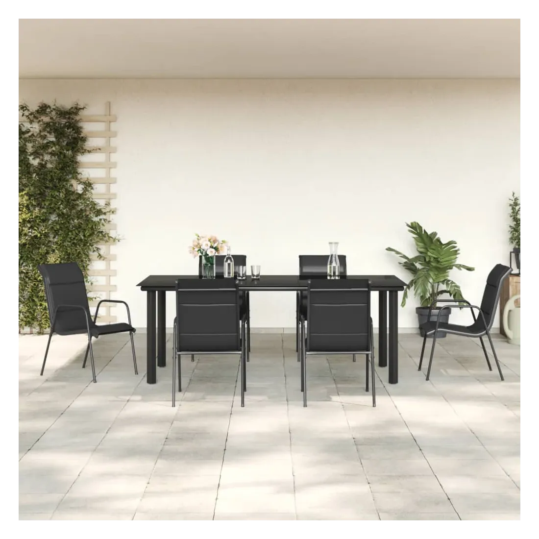 Profitez d'un bon repas ou d'un thé l'après-midi dans votre espace extérieur avec cet ensemble de salle à manger de jardin ! Ayant un design élégant, il deviendra le point central de votre jardin et de votre terrasse ! Cadre stable : les fauteuils et la table ont une construction en acier revêtu de poudre, ce qui les rend robustes et stables.Matériau durable : grâce au tissu textilène résistant avec rembourrage, ces chaises d'extérieur sont très confortables, résistantes aux intempéries et faciles à nettoyer.Dessus de table robustes : le dessus de table est en verre trempé, ce qui le rend facile à nettoyer. De plus, le dessus de table est parfait pour placer des collations, des boissons, des vases, des bols de fruits ou d'autres objets décoratifs.Expérience d'assise confortable : conçu avec un dossier et des accoudoirs incurvés, le fauteuil de jardin a une forme plus ergonomique pour un maximum de confort. Bon à savoir :Pour que vos meubles d'extérieur restent beaux, nous vous recommandons de les protéger avec une housse imperméable.
