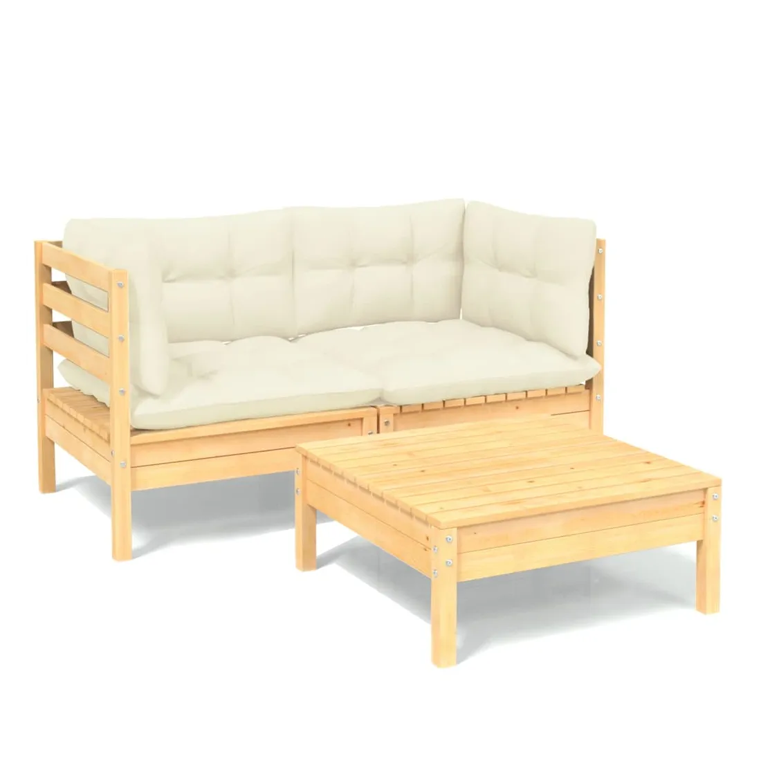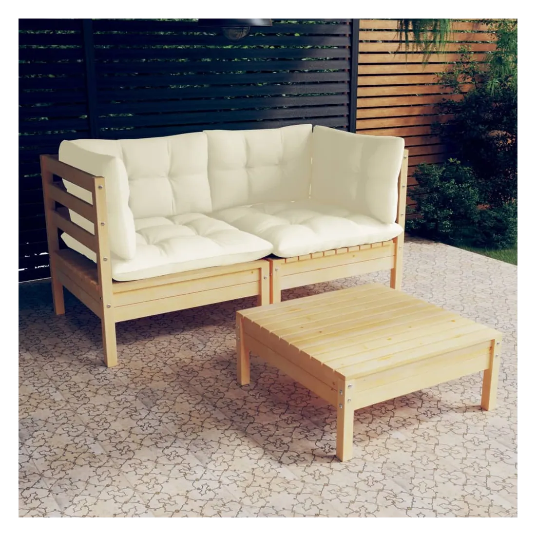 Ce salon de jardin est un excellent choix pour vous détendre et profiter du beau temps, faire une sieste ou discuter avec votre famille ou vos amis. Le salon de patio est fabriqué en bois de pin massif, ce qui le rend robuste et stable. Les coussins ajoutent un confort supplémentaire. Vous pouvez le combiner avec d’autres segments modulaires pour créer vos propres configurations de salon de jardin ! Remarque : afin de prolonger la durée de vie des meubles d'extérieur, nous vous recommandons de les protéger avec une housse imperméable.