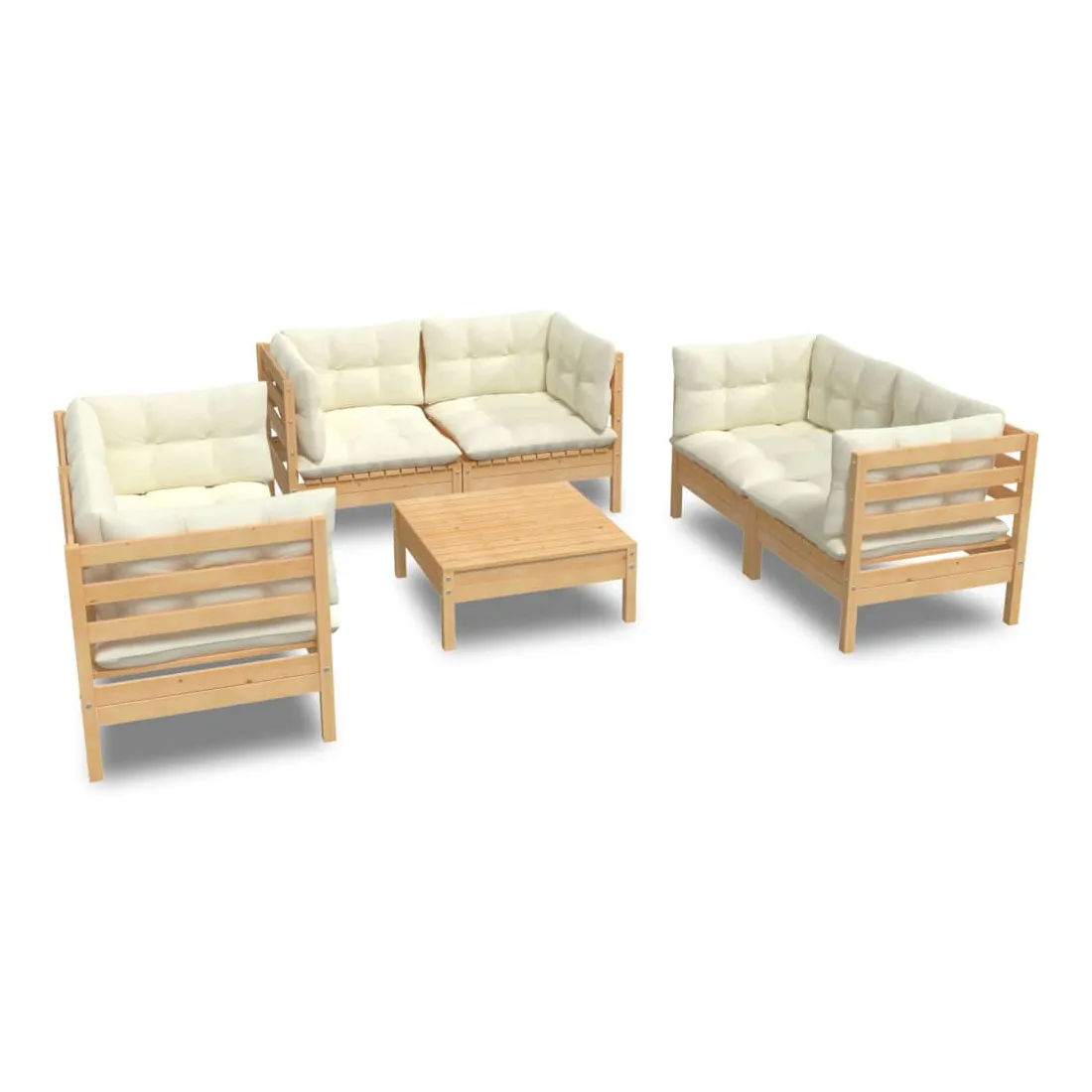 Ce salon de jardin est un excellent choix pour vous détendre et profiter du beau temps, faire une sieste ou discuter avec votre famille ou vos amis. Le salon de patio est fabriqué en bois de pin massif, ce qui le rend robuste et stable. Les coussins ajoutent un confort supplémentaire. Vous pouvez le combiner avec d’autres segments modulaires pour créer vos propres configurations de salon de jardin ! Remarque : afin de prolonger la durée de vie des meubles d'extérieur, nous vous recommandons de les protéger avec une housse imperméable.