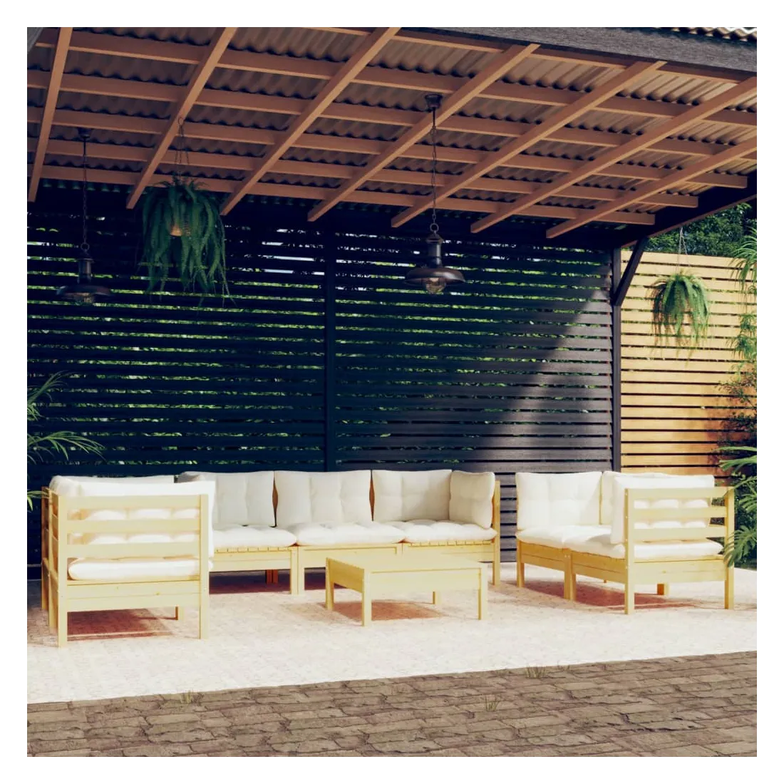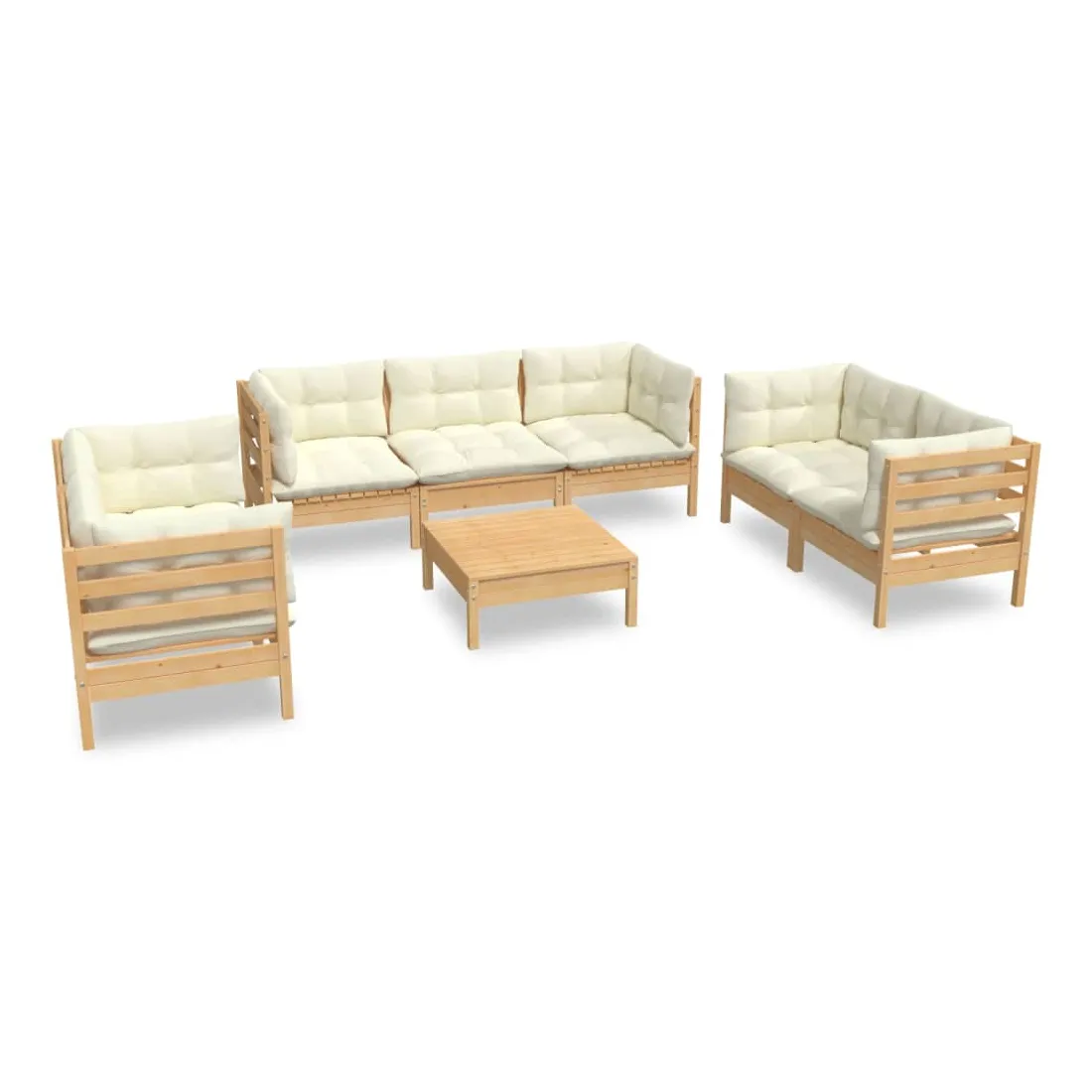 Ce salon de jardin est un excellent choix pour vous détendre et profiter du beau temps, faire une sieste ou discuter avec votre famille ou vos amis. Le salon de patio est fabriqué en bois de pin massif, ce qui le rend robuste et stable. Les coussins ajoutent un confort supplémentaire. Vous pouvez le combiner avec d’autres segments modulaires pour créer vos propres configurations de salon de jardin ! Remarque : afin de prolonger la durée de vie des meubles d'extérieur, nous vous recommandons de les protéger avec une housse imperméable.