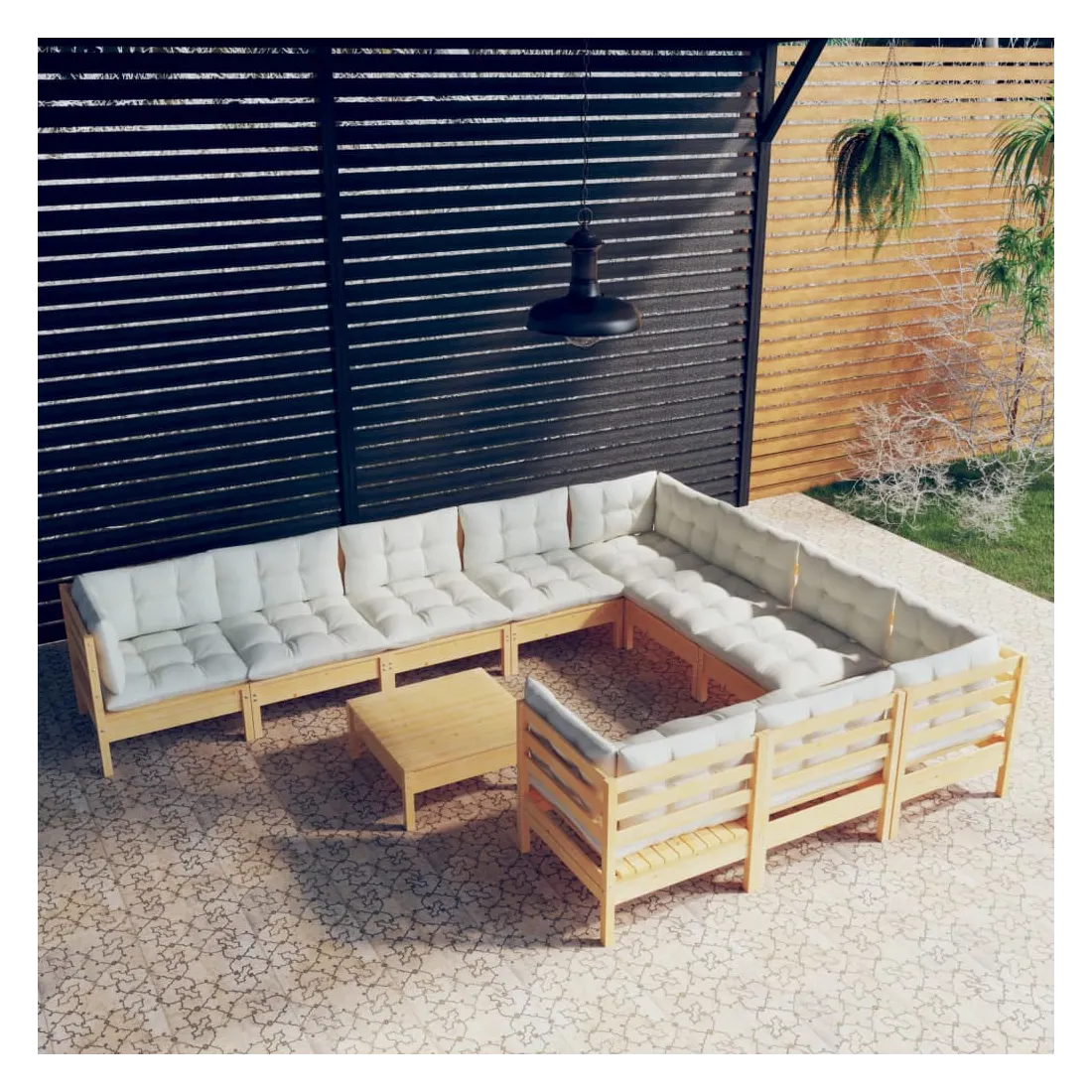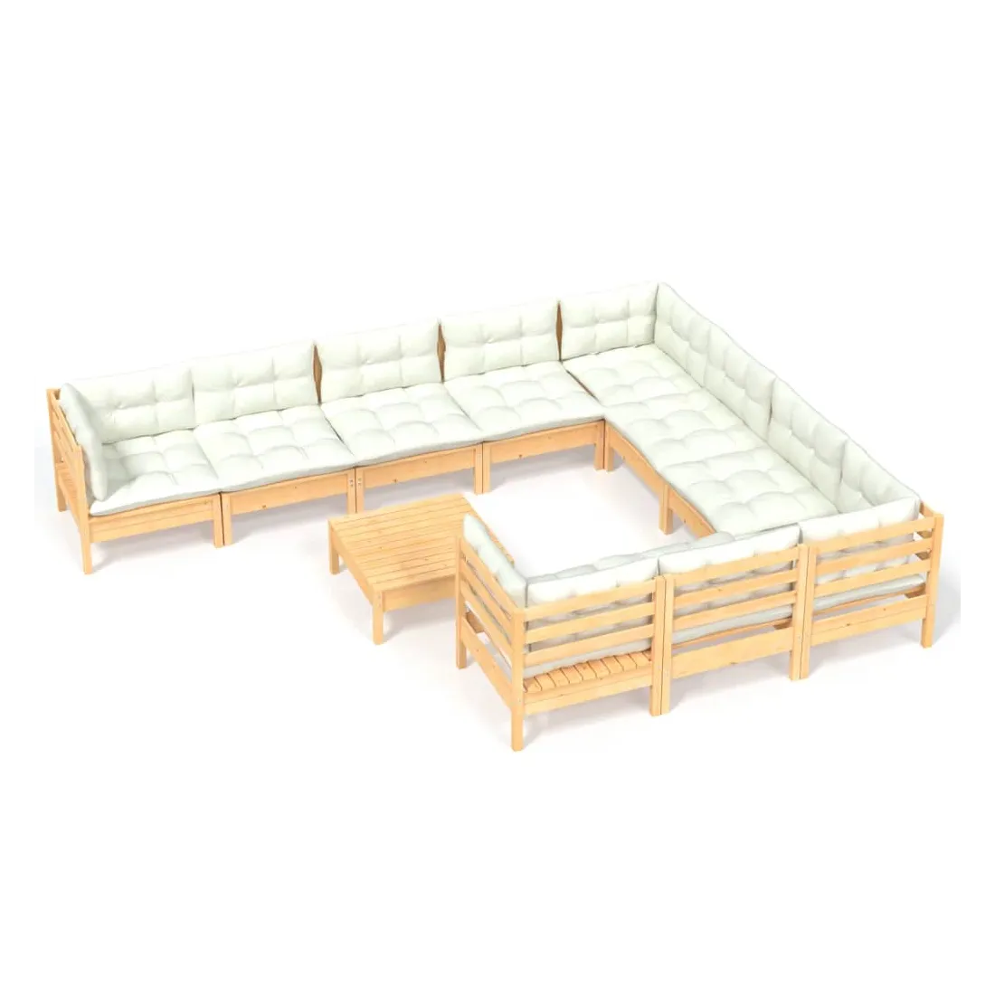 Cet ensemble de salon de jardin en bois est un choix excellent pour vous détendre et profiter du bon temps, faire une sieste ou discuter avec votre famille ou vos amis. Le salon de patio est fabriqué en bois de pin massif, ce qui le rend robuste et stable. Les coussins ajoutent un confort supplémentaire. Vous pouvez le combiner avec d’autres segments modulaires pour créer vos propres configurations de salon de jardin ! Remarque : afin de prolonger la durée de vie des meubles d'extérieur, nous vous recommandons de les protéger avec une housse imperméable.