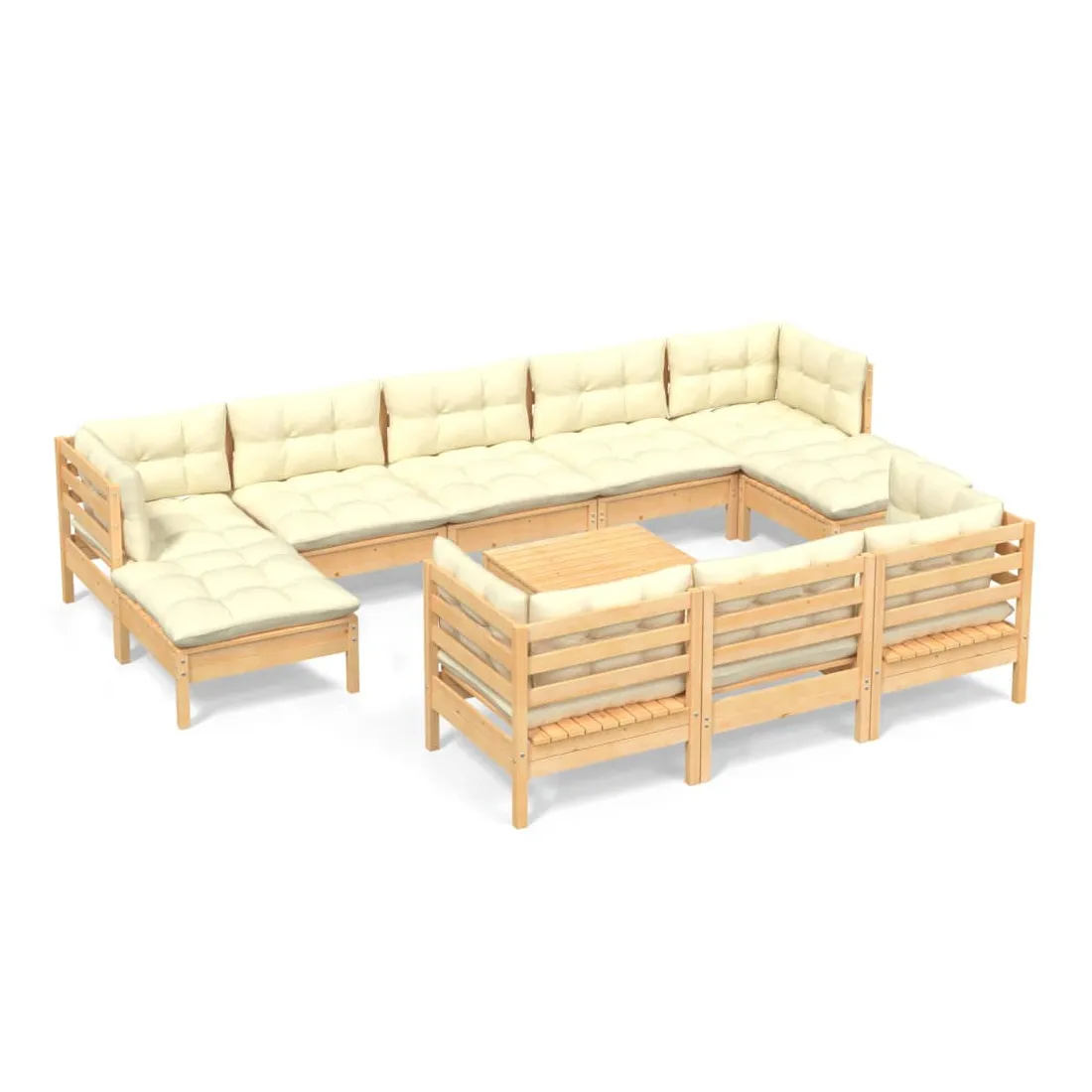 Ce salon de jardin est un excellent choix pour vous détendre et profiter du beau temps, faire une sieste ou discuter avec votre famille ou vos amis. Le salon de patio est fabriqué en bois de pin massif, ce qui le rend robuste et stable. Les coussins ajoutent un confort supplémentaire. Vous pouvez le combiner avec d’autres segments modulaires pour créer vos propres configurations de salon de jardin ! Remarque : afin de prolonger la durée de vie des meubles d'extérieur, nous vous recommandons de les protéger avec une housse imperméable.