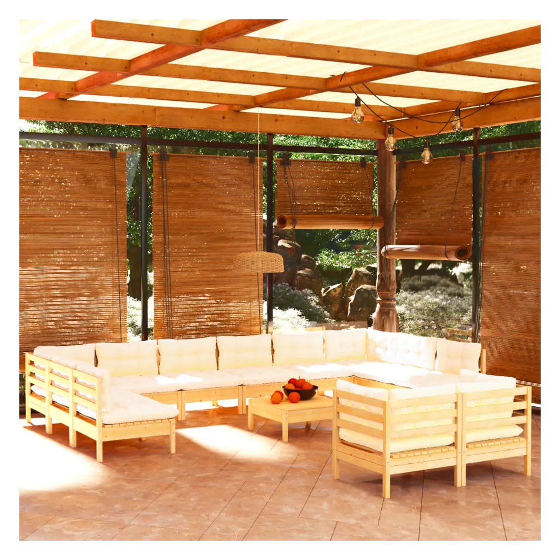 Cet ensemble de salon de jardin en bois est un choix excellent pour vous détendre et profiter du bon temps, faire une sieste ou discuter avec votre famille ou vos amis. Le salon de patio est fabriqué en bois de pin massif, ce qui le rend robuste et stable. Les coussins ajoutent un confort supplémentaire. Vous pouvez le combiner avec d’autres segments modulaires pour créer vos propres configurations de salon de jardin ! Remarque : afin de prolonger la durée de vie des meubles d'extérieur, nous vous recommandons de les protéger avec une housse imperméable.