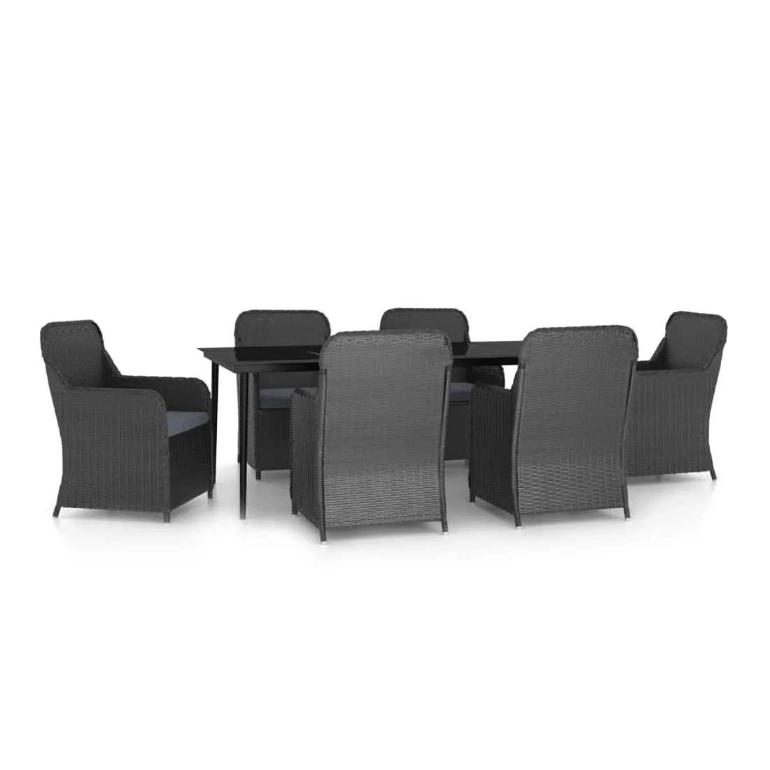 vidaXLCet élégant ensemble de salle à manger de jardin est destiné à être le point de mire de votre jardin ou patio ! C'est un excellent choix pour les repas en plein air ou pour vous détendre dans l'espace extérieur ! Les cadres en acier endui de poudre rendent la table et les chaises solides et stables pour une utilisation quotidienne en extérieur. Grâce à la résine tressée résistante à l'eau, les chaises sont faciles à nettoyer et résistantes à l'usure. La forme ergonomique et les coussins amovibles bien rembourrés en mousse offrent un confort d'assise optimal. Les housses de coussin en polyester, qui nécessitent peu d'entretien, peuvent être facilement retirées et lavées. En outre, le dessus de table en verre lisse est facile à nettoyer avec un chiffon humide et est parfait pour placer des repas, des boissons et d'autres objets décoratifs. Remarque : afin de prolonger la durée de vie des meubles d'extérieur, nous vous recommandons de les protéger avec une housse imperméable.