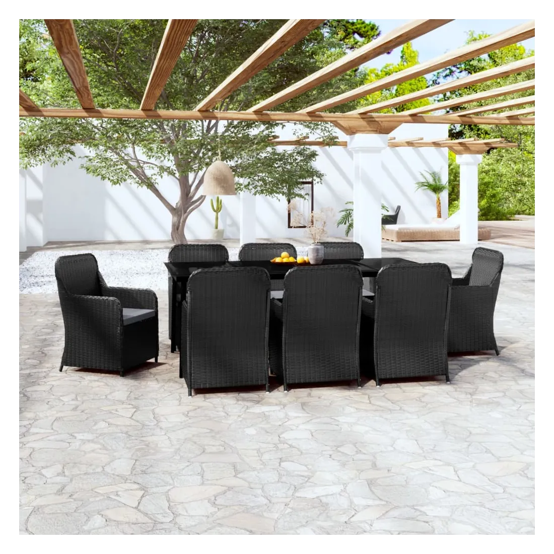 Ensemble à manger de jardin avec coussins 9 pcs noir