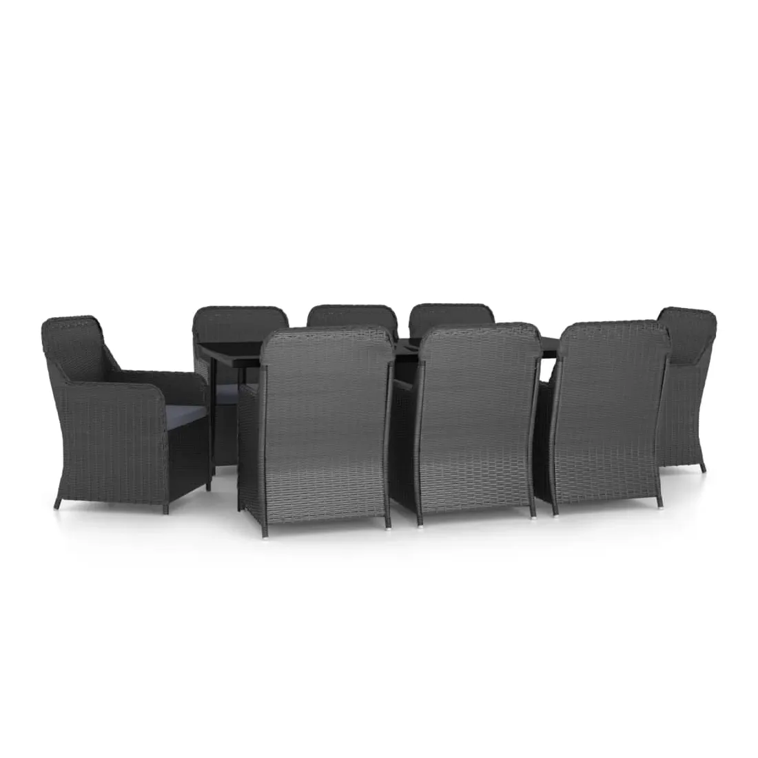 vidaXLCet élégant ensemble de salle à manger de jardin est destiné à être le point de mire de votre jardin ou patio ! C'est un excellent choix pour les repas en plein air ou pour vous détendre dans l'espace extérieur ! Les cadres en acier endui de poudre rendent la table et les chaises solides et stables pour une utilisation quotidienne en extérieur. Grâce à la résine tressée résistante à l'eau, les chaises sont faciles à nettoyer et résistantes à l'usure. La forme ergonomique et les coussins amovibles bien rembourrés en mousse offrent un confort d'assise optimal. Les housses de coussin en polyester, qui nécessitent peu d'entretien, peuvent être facilement retirées et lavées. En outre, le dessus de table en verre lisse est facile à nettoyer avec un chiffon humide et est parfait pour placer des repas, des boissons et d'autres objets décoratifs. Remarque : afin de prolonger la durée de vie des meubles d'extérieur, nous vous recommandons de les protéger avec une housse imperméable.