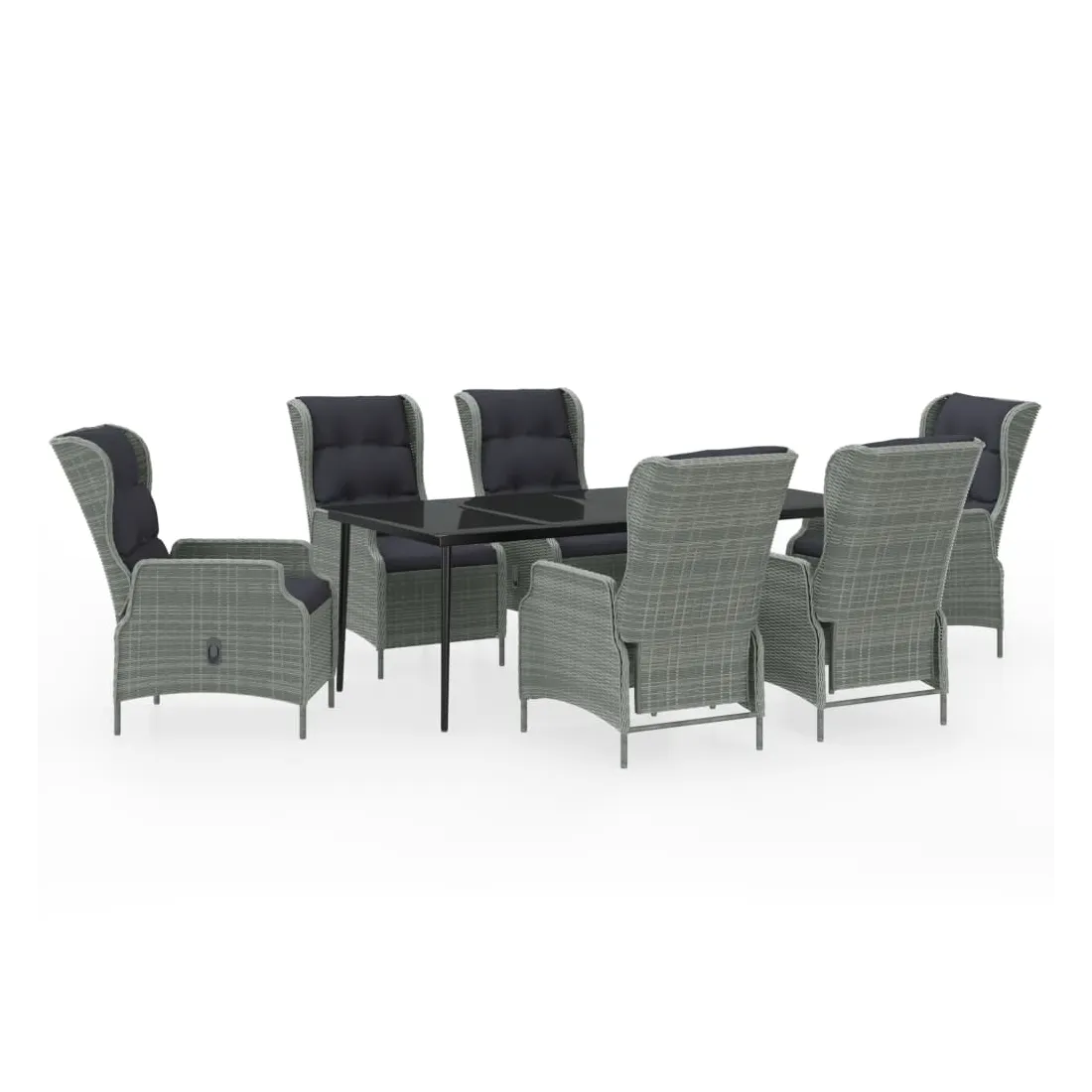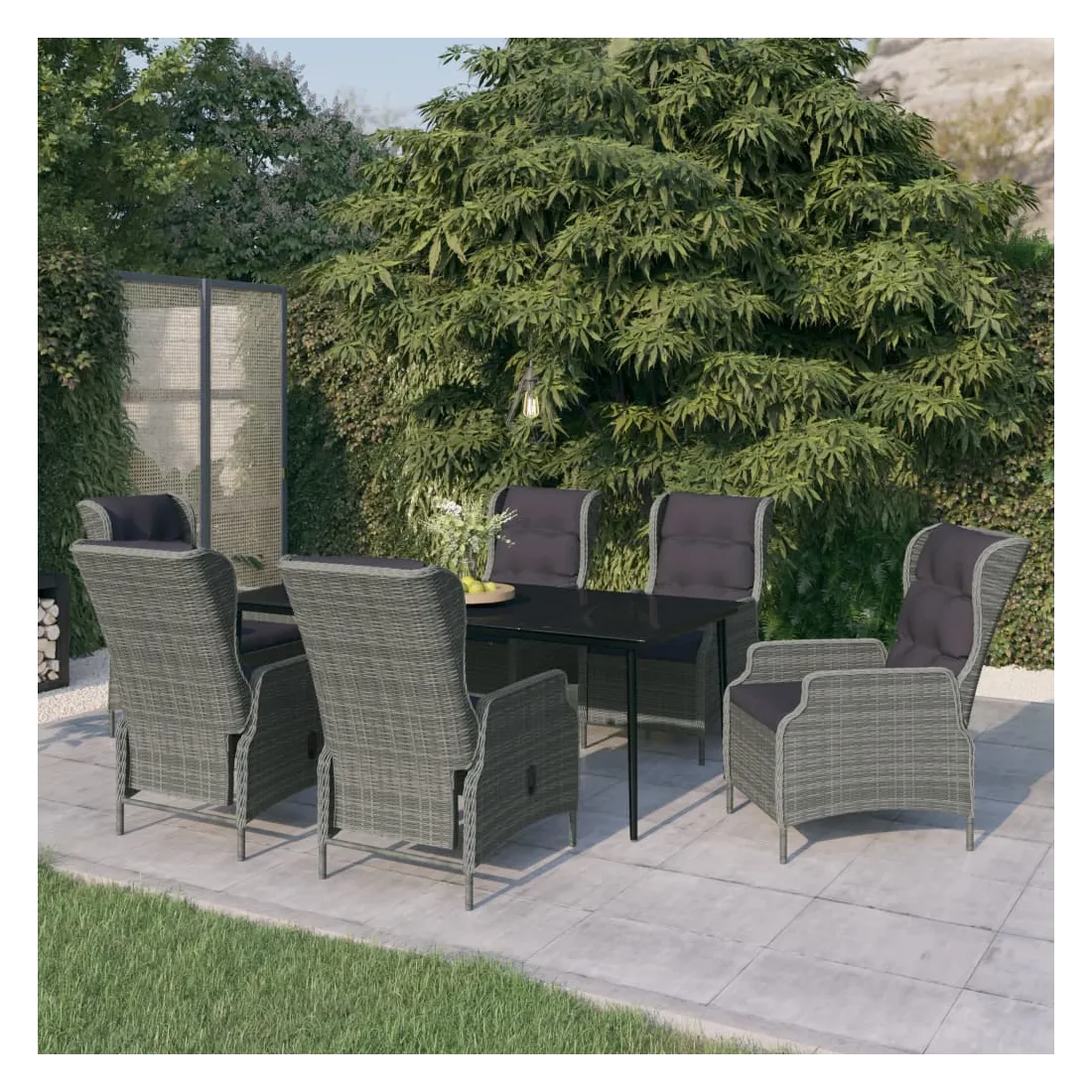 Profitez d'un bon repas ou d'un thé l'après-midi dans votre espace extérieur avec cet ensemble de salle à manger de jardin ! Ayant un design élégant, il deviendra le point central de votre jardin et de votre terrasse ! Cet ensemble de salle à manger d'extérieur pratique est doté d'un cadre en acier, ce qui le rend solide et robuste. Les chaises inclinables de jardin sont fabriquées en résine tressée résistante à l'eau et sans entretien, ce qui les rend parfaites pour une utilisation en extérieur. Les coussins bien rembourrés ajoutent un confort supplémentaire à vos repas. Les housses des coussins sont équipées d'une fermeture éclair et sont amovibles et lavables. Grâce au mécanisme de levage à gaz, le dossier est également réglable pour s'adapter à vos positions. En touchant le bouton sur le côté, le dossier peut s'incliner, pour une position confortable. En outre, le dessus de table en verre lisse est facile à nettoyer à l'aide d'un chiffon humide et est excellent pour placer des repas, des boissons et d'autres objets décoratifs. Remarque : afin de prolonger la durée de vie des meubles d'extérieur, nous vous recommandons de les protéger avec une housse imperméable.
