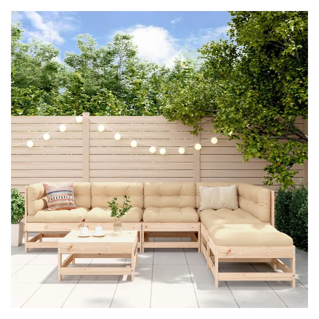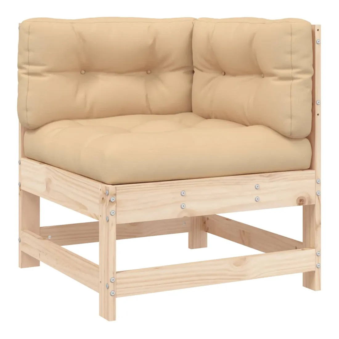 Ce salon de jardin en bois, qui se démarque par son design à lattes et ses coussins moelleux, sera un excellent supplément à votre jardin, patio ou terrasse pour profiter d'un moment agréable avec votre famille ou vos amis. Bois de pin massif : le bois de pin massif est un matériau naturel magnifique. Le bois de pin a un grain droit et les nœuds donnent au matériau son aspect caractéristique et rustique.Cadre robuste et stable : le cadre en bois rend l'ensemble de salon robuste et stable pour une utilisation quotidienne à l'extérieur.Expérience d'assise confortable : le dossier et l'accoudoir ajoutent un confort d'assise supplémentaire à l'ensemble de meubles de jardin. De plus, les coussins bien rembourrés vous permettent de vous asseoir confortablement.Design modulaire : le canapé est flexible et facile à déplacer. Vous pouvez le combiner avec d'autres segments modulaires de la boutique en ligne pour créer vos propres configurations de salon de jardin ! Bon à savoir :Pour que vos meubles d'extérieur restent beaux, nous vous recommandons de les protéger avec une housse imperméable.
