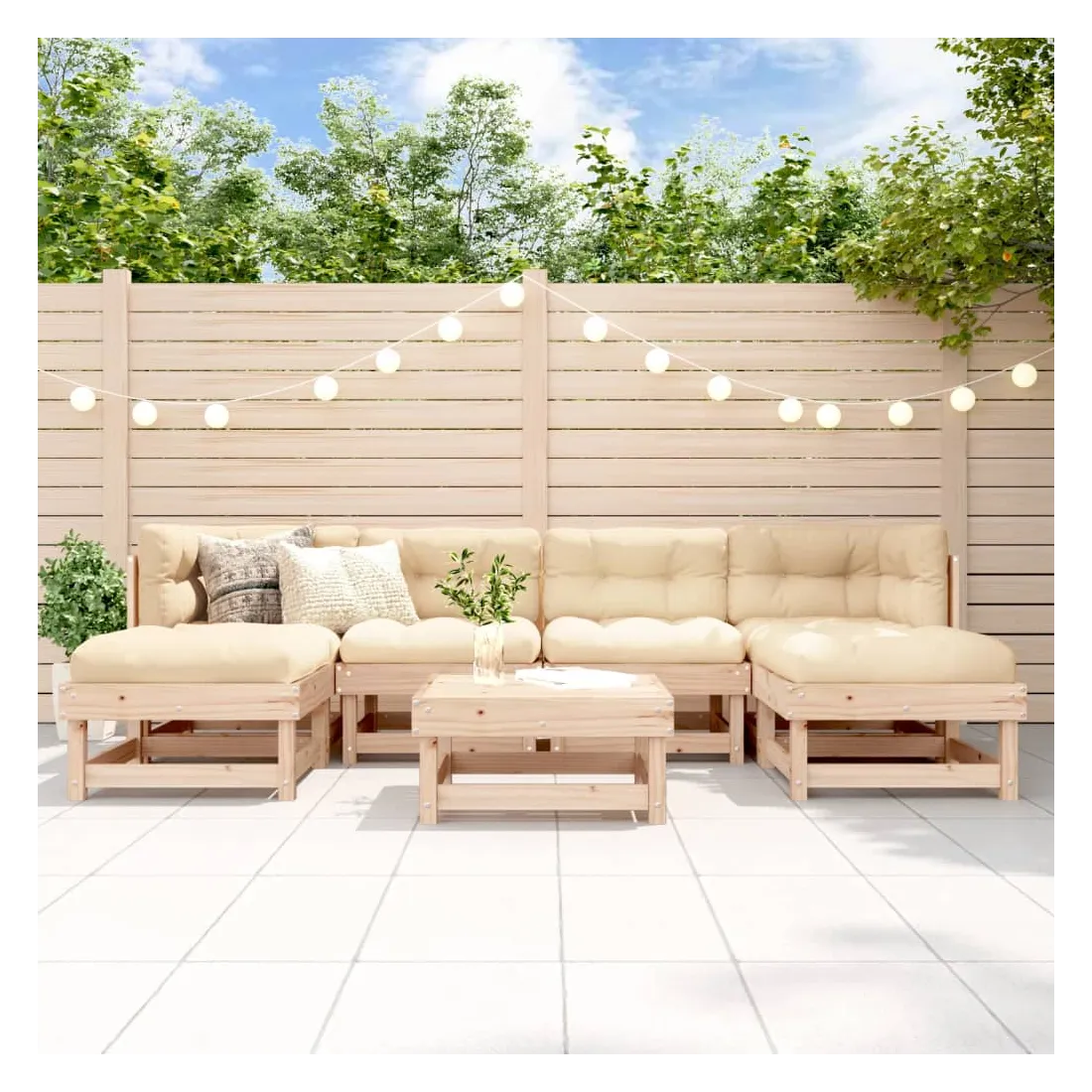 Ce salon de jardin en bois, qui se démarque par son design à lattes, sera un excellent supplément à votre jardin, patio ou terrasse pour profiter d'un moment agréable avec votre famille ou vos amis. Bois de pin massif : le bois de pin massif est un matériau naturel magnifique. Le bois de pin a un grain droit et les nœuds donnent au matériau son aspect caractéristique et rustique.Expérience d'assise confortable : le dossier ajoute un confort d'assise supplémentaire à l'ensemble de salon.Design modulaire : le canapé est flexible et facile à déplacer. Vous pouvez le combiner avec d'autres segments modulaires de la boutique en ligne pour créer vos propres configurations de salon de jardin ! Bon à savoir :Les coussins ne sont pas inclus.Pour que vos meubles d'extérieur restent beaux, nous vous recommandons de les protéger avec une housse imperméable.