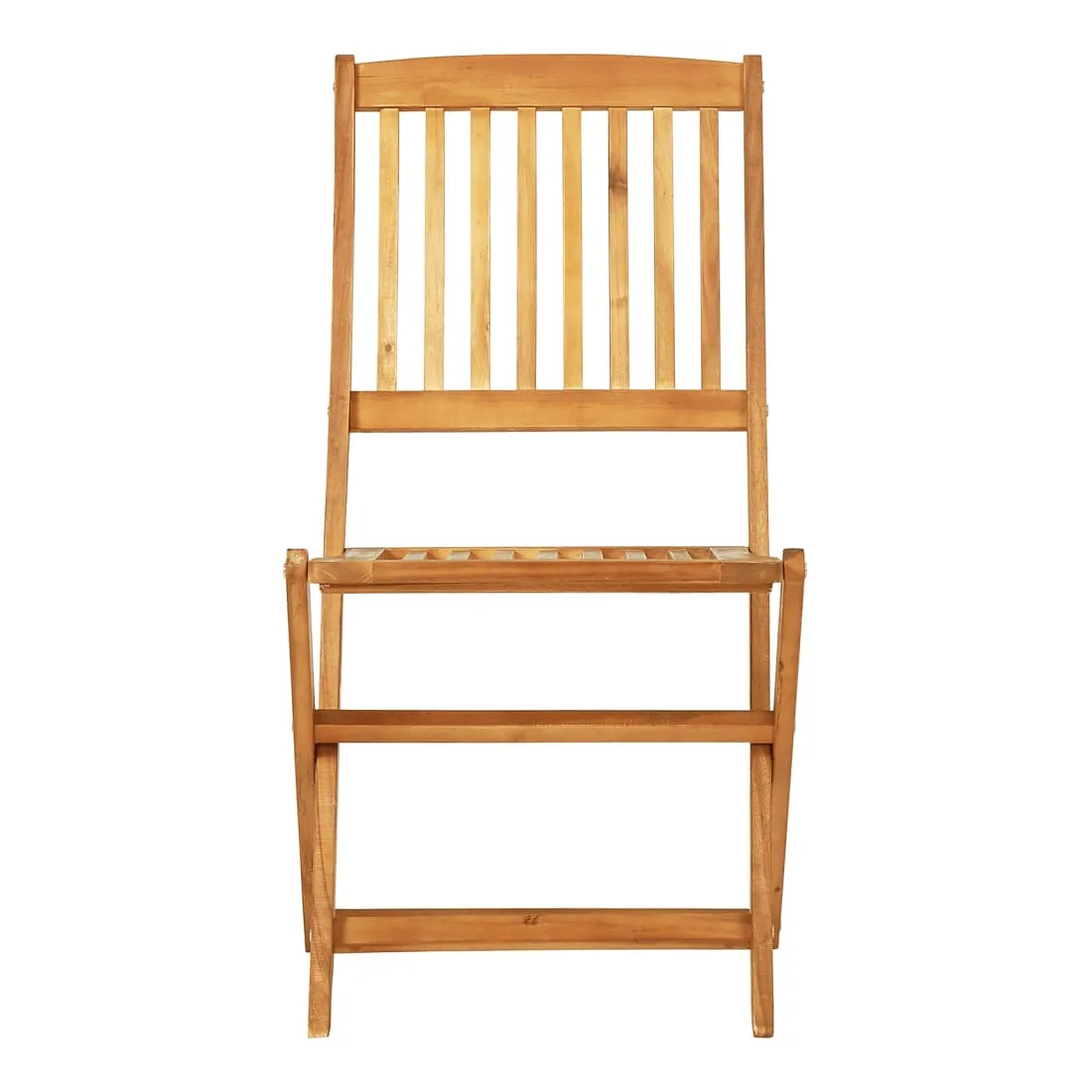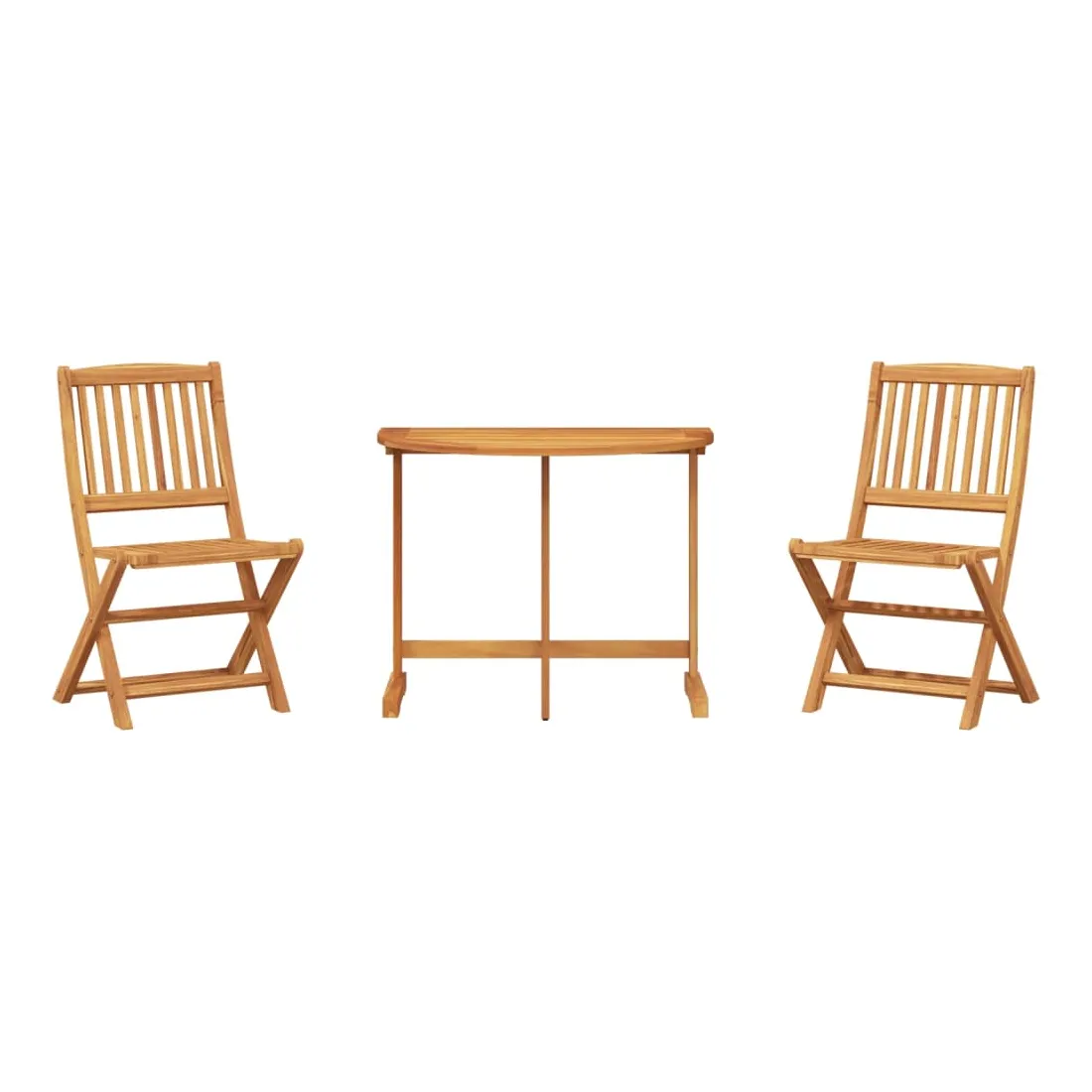 Profitez de votre temps libre avec votre famille et vos amis autour de cet ensemble de jardin en bois ! Bois d'acacia massif : le bois d'acacia massif est un matériau naturel magnifique. Le bois d'acacia un bois dur tropical, qui est dense, robuste et durable.Conception pliable : l'ensemble d'extérieur peut être plié pour faciliter le déplacement et le transport. Vous pouvez le ranger dans un espace réduit lorsqu'il n'est pas utilisé.Dessus pratique : le dessus stable de la table de bistro est idéal pour placer votre boisson ou toute autre nécessité dont vous avez besoin à portée de main. Un côté de la table est droit, ce qui permet de la placer contre le mur.Une expérience d'assise confortable : dotée d'un dossier, la chaise d'extérieur vous offre un confort optimal.Surface facile à nettoyer : la surface à finition à l'huile rend cette table pliable facile à nettoyer avec un chiffon humide.Nombreuses utilisations : l’ensemble a un design intemporel et s'adapte à presque tous les décors. Vous pouvez la placer dans votre maison ou dans n'importe quel patio commercial, jardin, balcon, etc. Bon à savoir :Pour que vos meubles d'extérieur restent beaux, nous vous recommandons de les protéger avec une housse imperméable.