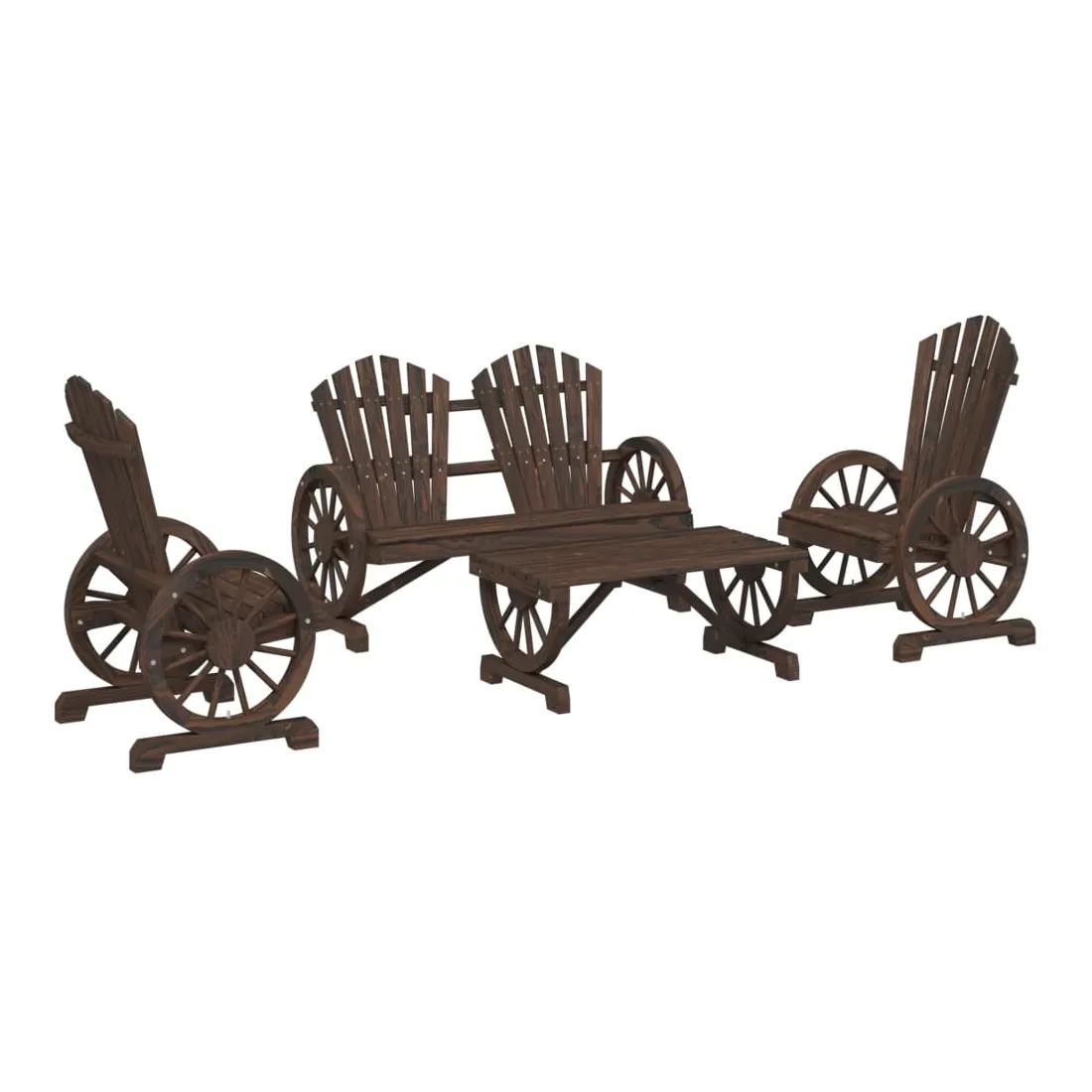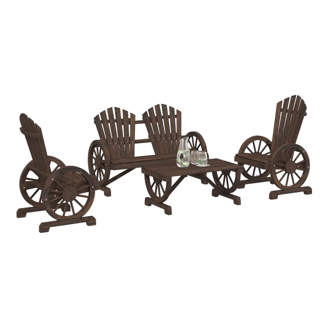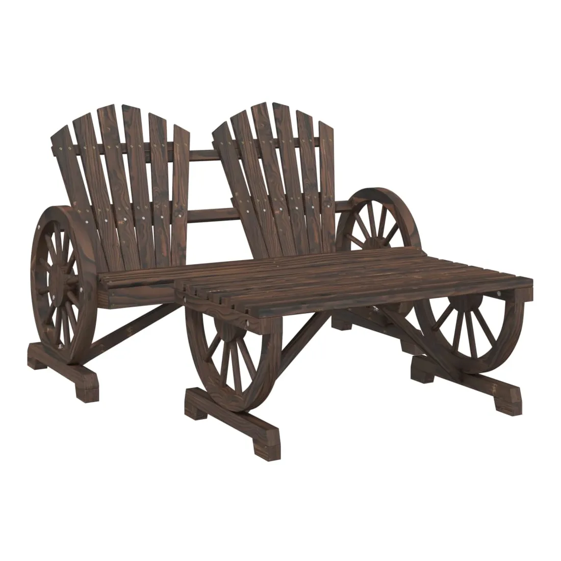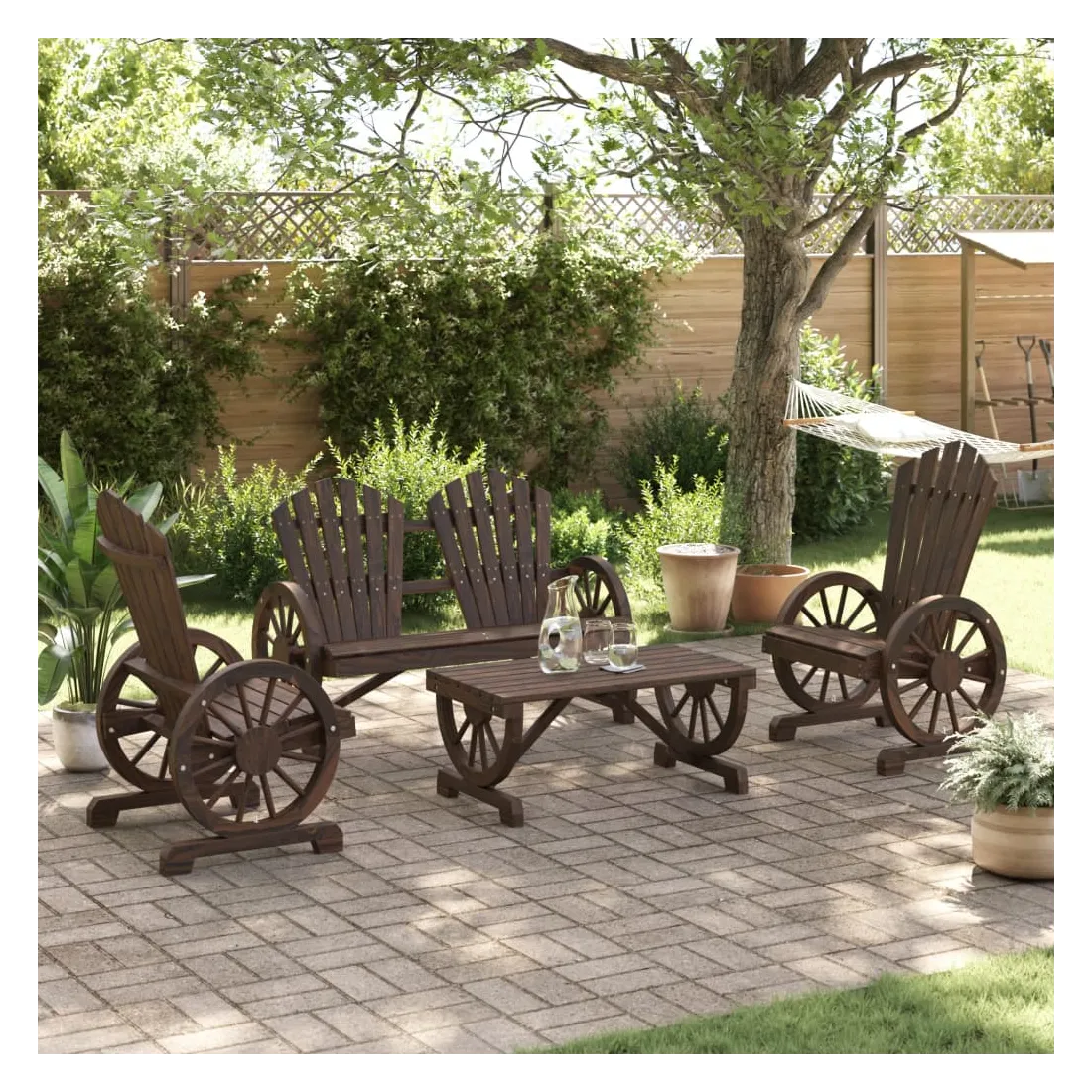 Profitez de votre temps libre avec ce salon de jardin en bois de style Adirondack. Bois de sapin massif : le bois de sapin massif est un matériau beau et durable qui conserve son intégrité même lorsqu'il est exposé à l'humidité. Il ne sèche pas et ne se déforme pas, ce qui en fait un choix fiable.Assise confortable : la chaise longue de jardin est dotée d'une assise ergonomique et d'un dossier incliné pour un confort d'assise optimal. De plus, les accoudoirs en forme de roue de chariot offrent un espace confortable pour reposer vos bras.Table pratique : la table basse est parfaite pour placer vos boissons, aliments et autres objets de décoration. Bon à savoir :Pour que vos meubles d'extérieur restent beaux, nous vous recommandons de les protéger avec une housse imperméable.