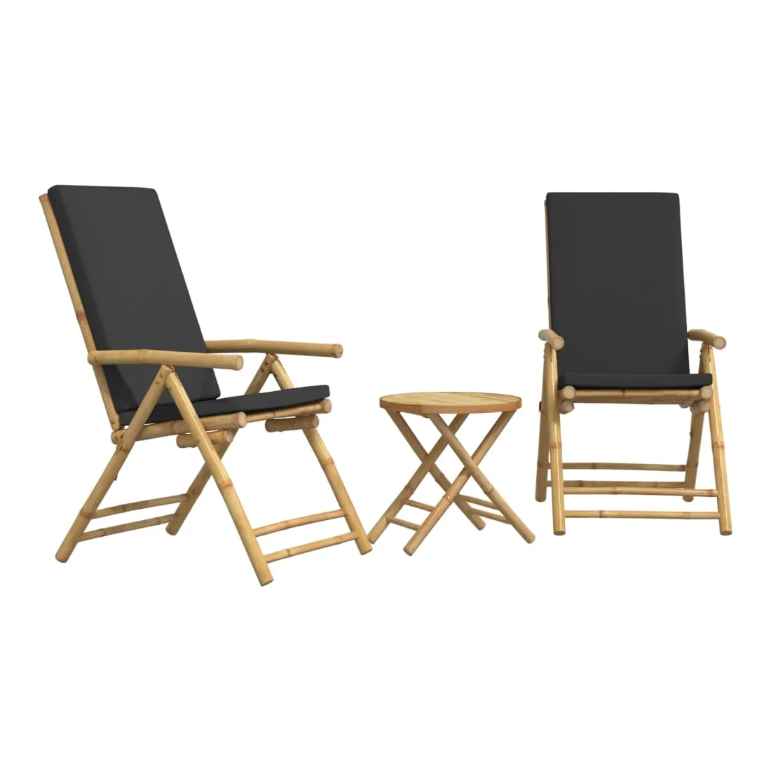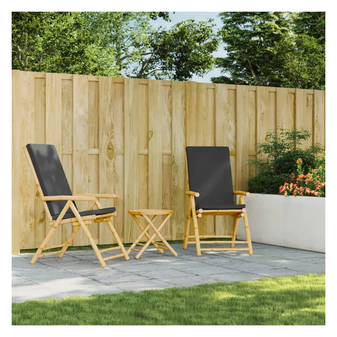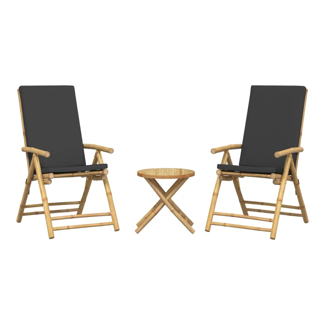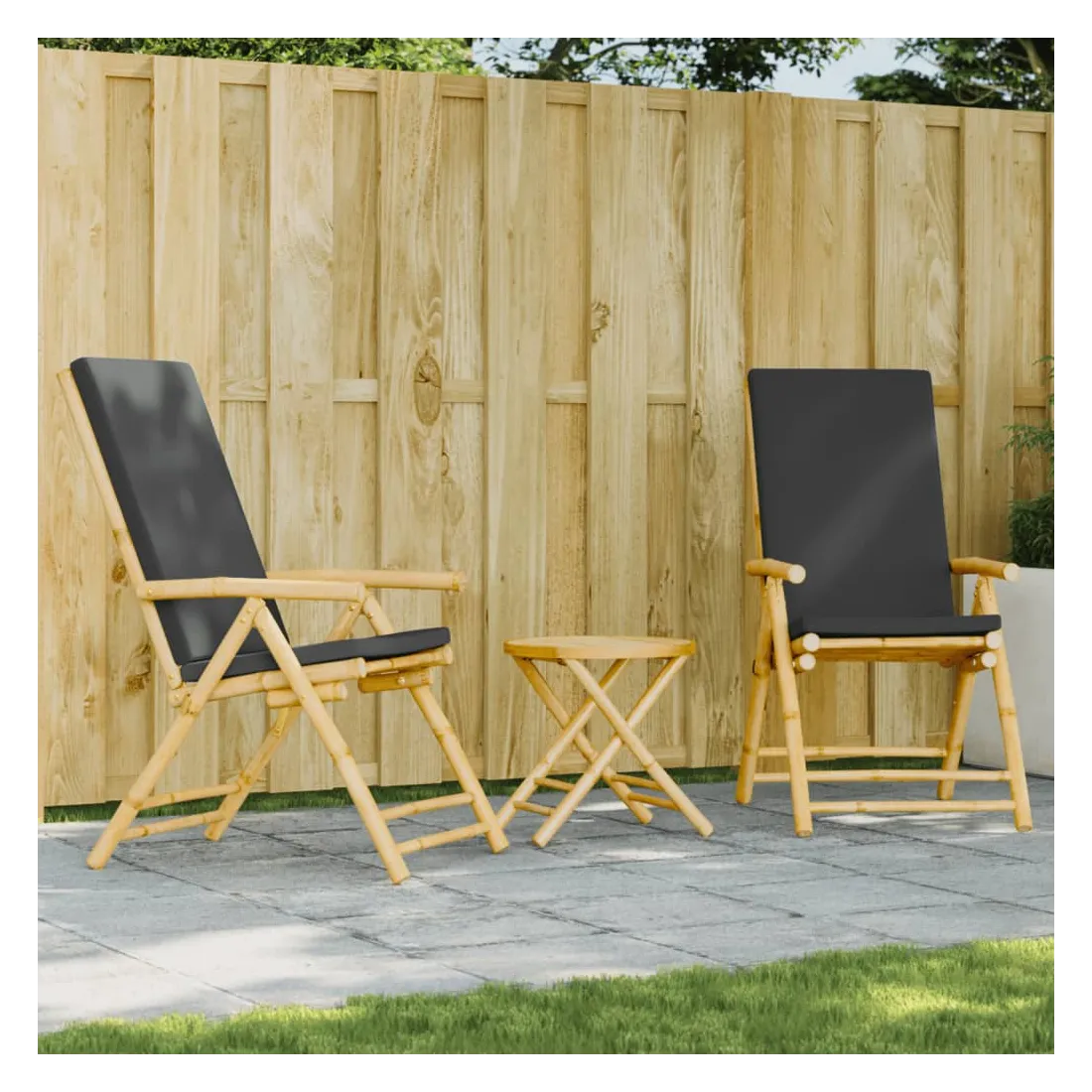 Savourez un café ou discutez avec votre famille et vos amis dans le jardin, l'arrière-cour ou sur le balcon avec cet ensemble de bistro confortable ! Matériau durable : le bambou est connu pour sa flexibilité et sa dureté. Les meubles en bambou sont une bonne option lorsque vous voulez des meubles solides fabriqués à partir de matériaux naturels.Fonction d'inclinaison : cette chaise inclinable est conçue avec un dossier réglable en cinq positions, ce qui vous permet de personnaliser l'inclinaison pour votre confort.Expérience d'assise confortable : cet ensemble de meubles d'extérieur, doté de coussins épais, offre une expérience d'assise confortable.Design pliable : l'ensemble de bistro peut être facilement plié lorsqu'il n'est pas utilisé pour faciliter le rangement et le transport.Housse amovible et lavable : ces coussins de siège sont dotés de housses amovibles pour un lavage et un entretien faciles. Les housses de coussin ont un rabat à l'arrière pour une fixation facile aux dossiers. Bon à savoir :Pour que vos meubles d'extérieur restent beaux, nous vous recommandons de les protéger avec une housse imperméable.