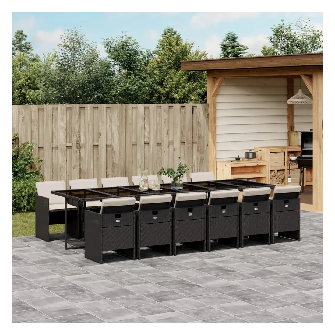 Cet ensemble de salle à manger de jardin est un excellent choix pour les repas en plein air ou pour vous détendre dans le jardin, dans l'arrière-cour ou sur la terrasse. Matériau durable : la résine tressée, également connue sous le nom de poly rotin, est un matériau synthétique solide et nécessitant peu d'entretien qui ressemble au rotin naturel. Il est léger, facile à nettoyer et couramment utilisé pour les meubles d'extérieur en raison de sa durabilité et de ses propriétés de résistance aux intempéries.Rangement compact : ces chaises sont dotées d'un dossier rabattable, ce qui permet de les ranger facilement sous la table. Une fois pliées, elles se rangent parfaitement sous la table, formant un cube peu encombrant. Expérience d'assise confortable : ce mobilier d'extérieur, doté de coussins épais, offre une expérience d'assise confortable.Housse amovible et lavable : ces coussins de siège sont dotés de housses amovibles pour un lavage et un entretien faciles.Dessus en verre : le dessus de la table d'extérieur est fabriqué en verre trempé solide et durable, ce qui le rend facile à nettoyer avec un chiffon humide et ajoute une touche d'élégance à votre espace extérieur. Bon à savoir : Pour que vos meubles d'extérieur restent beaux, nous vous recommandons de les protéger avec une housse imperméable.
