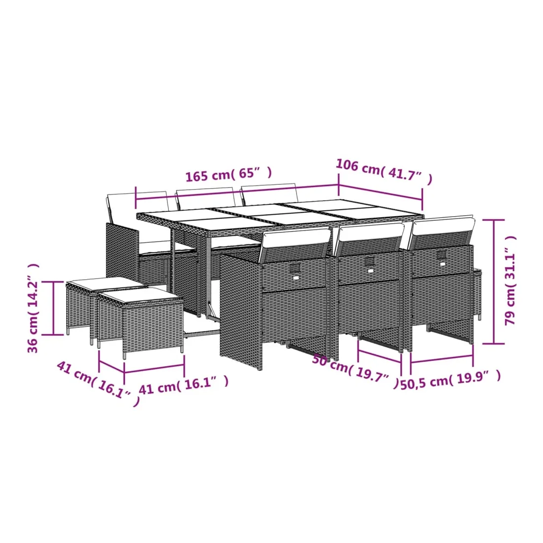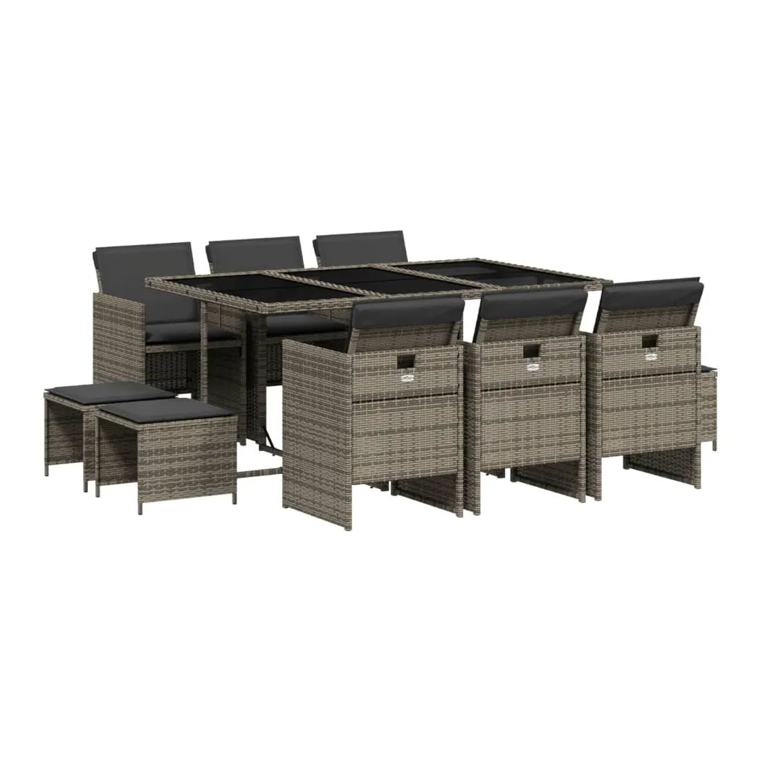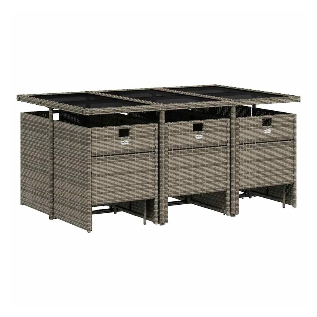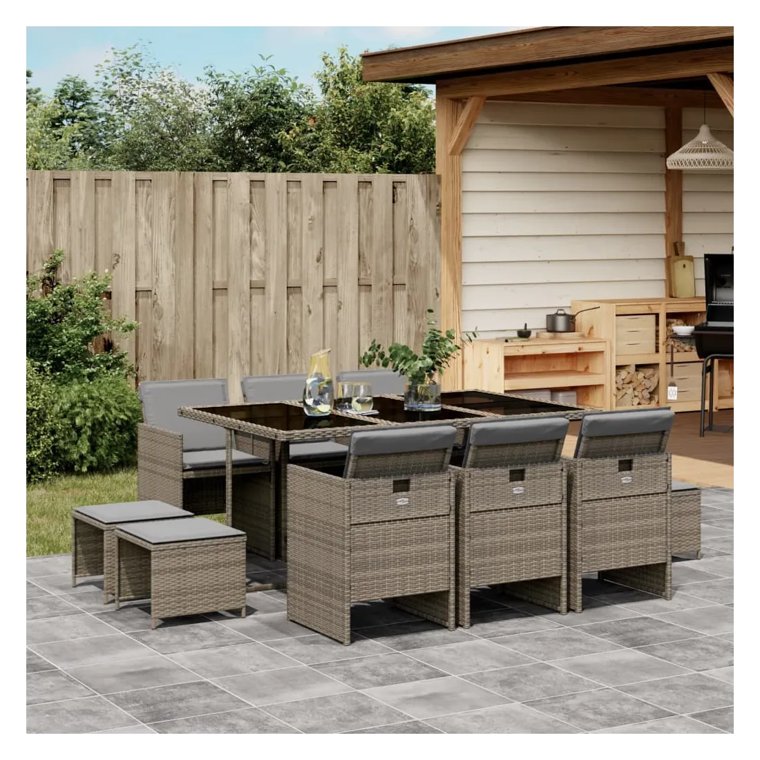 Cet ensemble de salle à manger de jardin est un excellent choix pour les repas en plein air ou pour vous détendre dans le jardin, dans l'arrière-cour ou sur la terrasse. Matériau durable : la résine tressée, également connue sous le nom de poly rotin, est un matériau synthétique solide et nécessitant peu d'entretien qui ressemble au rotin naturel. Il est léger, facile à nettoyer et couramment utilisé pour les meubles d'extérieur en raison de sa durabilité et de ses propriétés de résistance aux intempéries.Rangement compact : ces chaises sont dotées d'un dossier rabattable, ce qui permet de les ranger facilement sous la table. Une fois pliées, elles se rangent parfaitement sous la table, formant un cube peu encombrant. De plus, les tabourets peuvent également être rangés sous les chaises, maximisant encore davantage l'efficacité de l'espace. Expérience d'assise confortable : ce mobilier d'extérieur, doté de coussins épais, offre une expérience d'assise confortable.Housse amovible et lavable : ces coussins de siège sont dotés de housses amovibles pour un lavage et un entretien faciles.Dessus en verre : le dessus de la table d'extérieur est fabriqué en verre trempé solide et durable, ce qui le rend facile à nettoyer avec un chiffon humide et ajoute une touche d'élégance à votre espace extérieur. Bon à savoir : Pour que vos meubles d'extérieur restent beaux, nous vous recommandons de les protéger avec une housse imperméable.
