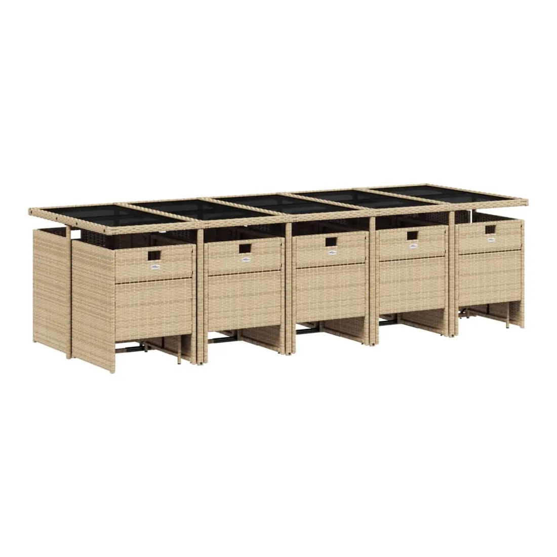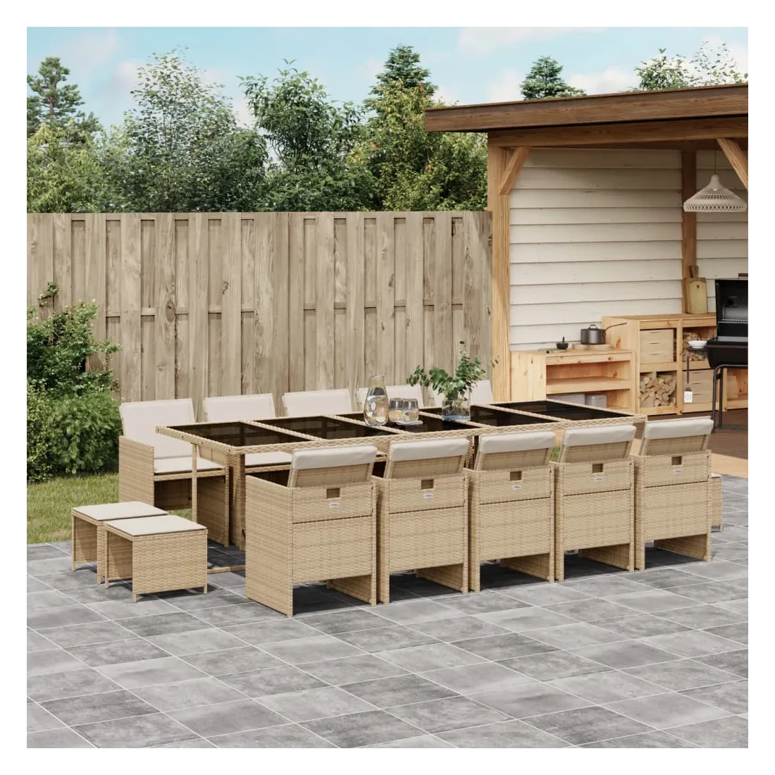 Cet ensemble de salle à manger de jardin est un excellent choix pour les repas en plein air ou pour vous détendre dans le jardin, dans l'arrière-cour ou sur la terrasse. Matériau durable : la résine tressée, également connue sous le nom de poly rotin, est un matériau synthétique solide et nécessitant peu d'entretien qui ressemble au rotin naturel. Il est léger, facile à nettoyer et couramment utilisé pour les meubles d'extérieur en raison de sa durabilité et de ses propriétés de résistance aux intempéries.Rangement compact : ces chaises sont dotées d'un dossier rabattable, ce qui permet de les ranger facilement sous la table. Une fois pliées, elles se rangent parfaitement sous la table, formant un cube peu encombrant. De plus, les tabourets peuvent également être rangés sous les chaises, maximisant encore davantage l'efficacité de l'espace. Expérience d'assise confortable : ce mobilier d'extérieur, doté de coussins épais, offre une expérience d'assise confortable.Housse amovible et lavable : ces coussins de siège sont dotés de housses amovibles pour un lavage et un entretien faciles.Dessus en verre : le dessus de la table d'extérieur est fabriqué en verre trempé solide et durable, ce qui le rend facile à nettoyer avec un chiffon humide et ajoute une touche d'élégance à votre espace extérieur. Bon à savoir : Pour que vos meubles d'extérieur restent beaux, nous vous recommandons de les protéger avec une housse imperméable.