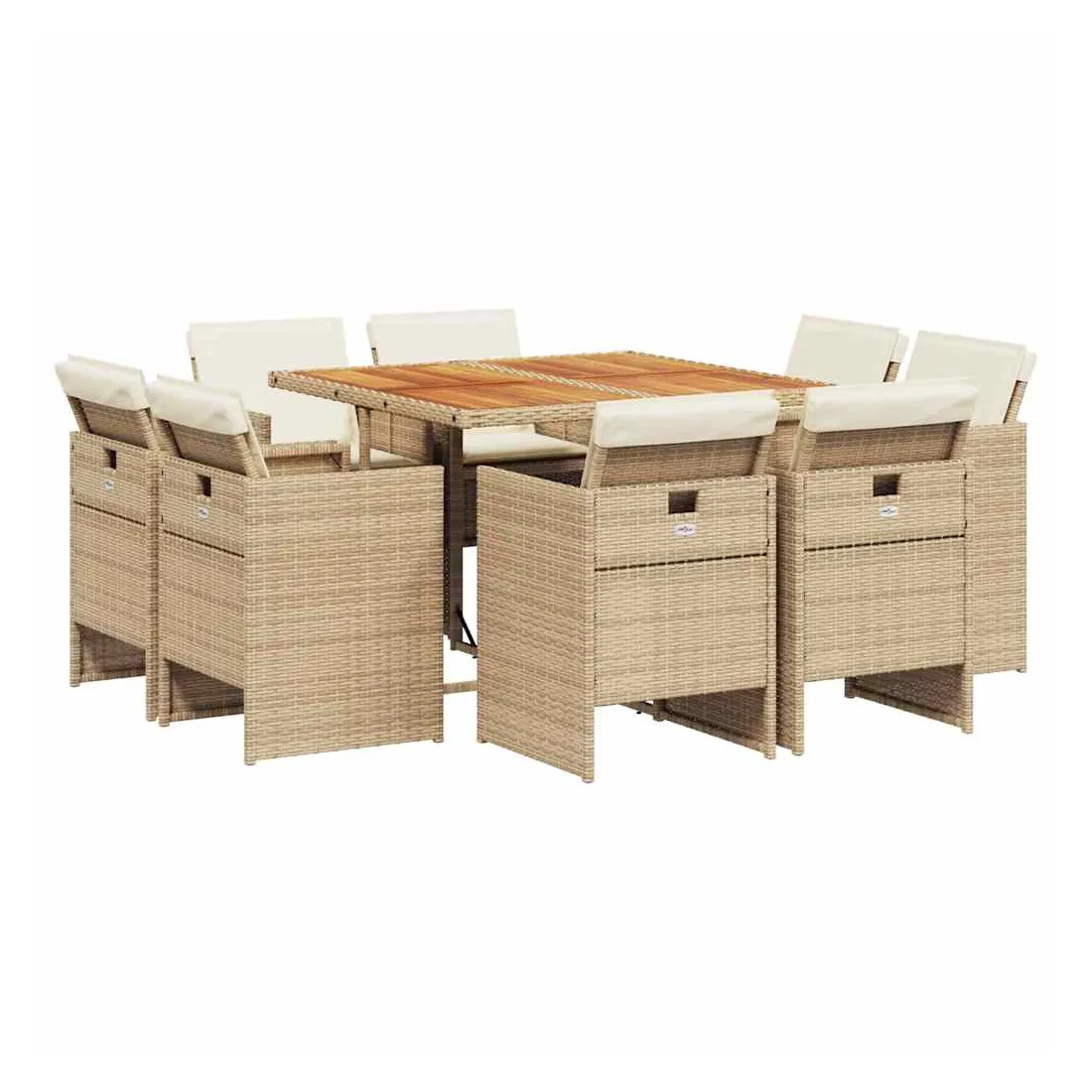 Ensemble à manger de jardin et coussins 9 pcs beige Poly rotin
