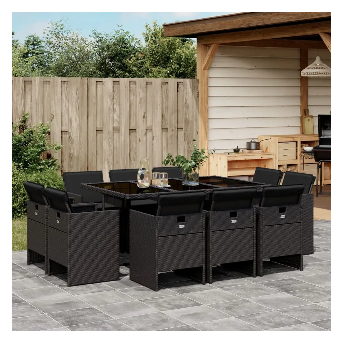 Cet ensemble de salle à manger de jardin est un excellent choix pour les repas en plein air ou pour vous détendre dans le jardin, dans l'arrière-cour ou sur la terrasse. Matériau durable : la résine tressée, également connue sous le nom de poly rotin, est un matériau synthétique solide et nécessitant peu d'entretien qui ressemble au rotin naturel. Il est léger, facile à nettoyer et couramment utilisé pour les meubles d'extérieur en raison de sa durabilité et de ses propriétés de résistance aux intempéries.Rangement compact : ces chaises sont dotées d'un dossier rabattable, ce qui permet de les ranger facilement sous la table. Une fois pliées, elles se rangent parfaitement sous la table, formant un cube peu encombrant. Expérience d'assise confortable : ce mobilier d'extérieur, doté de coussins épais, offre une expérience d'assise confortable.Housse amovible et lavable : ces coussins de siège sont dotés de housses amovibles pour un lavage et un entretien faciles.Dessus en verre : le dessus de la table d'extérieur est fabriqué en verre trempé solide et durable, ce qui le rend facile à nettoyer avec un chiffon humide et ajoute une touche d'élégance à votre espace extérieur. Bon à savoir : Pour que vos meubles d'extérieur restent beaux, nous vous recommandons de les protéger avec une housse imperméable.