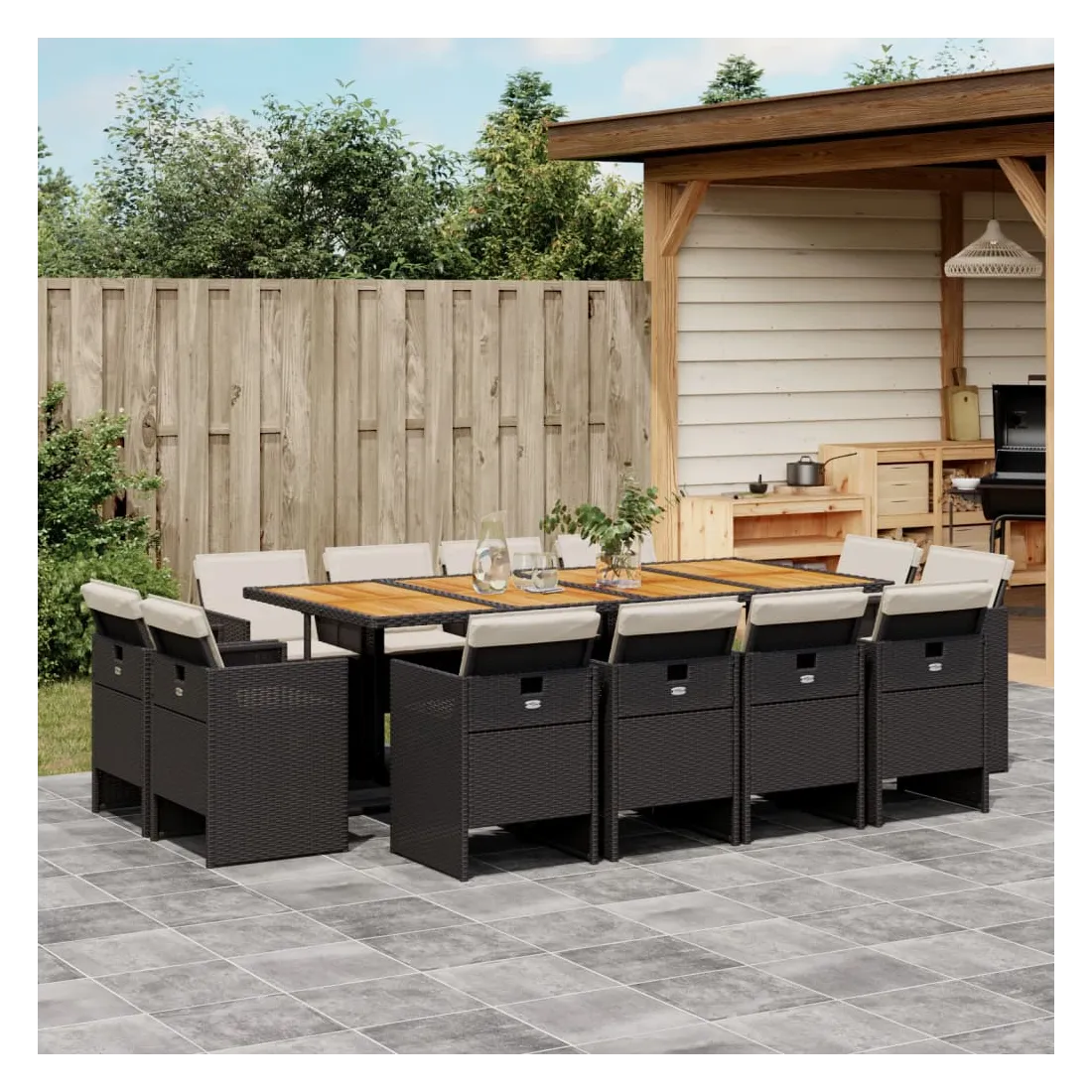 Cet ensemble de salle à manger de jardin est un excellent choix pour les repas en plein air ou pour vous détendre dans le jardin, dans l'arrière-cour ou sur la terrasse. Matériau durable : la résine tressée, également connue sous le nom de poly rotin, est un matériau synthétique solide et nécessitant peu d'entretien qui ressemble au rotin naturel. Il est léger, facile à nettoyer et couramment utilisé pour les meubles d'extérieur en raison de sa durabilité et de ses propriétés de résistance aux intempéries.Rangement compact : ces chaises sont dotées d'un dossier rabattable, ce qui permet de les ranger facilement sous la table. Une fois pliées, elles se rangent parfaitement sous la table, formant un cube peu encombrant. Expérience d'assise confortable : ce mobilier d'extérieur, doté de coussins épais, offre une expérience d'assise confortable.Housse amovible et lavable : ces coussins de siège sont dotés de housses amovibles pour un lavage et un entretien faciles.Dessus stable et facile à nettoyer : cette table de jardin a un dessus en bois d'acacia robuste, durable et facile à nettoyer avec un chiffon humide. Bon à savoir : Pour que vos meubles d'extérieur restent beaux, nous vous recommandons de les protéger avec une housse imperméable.