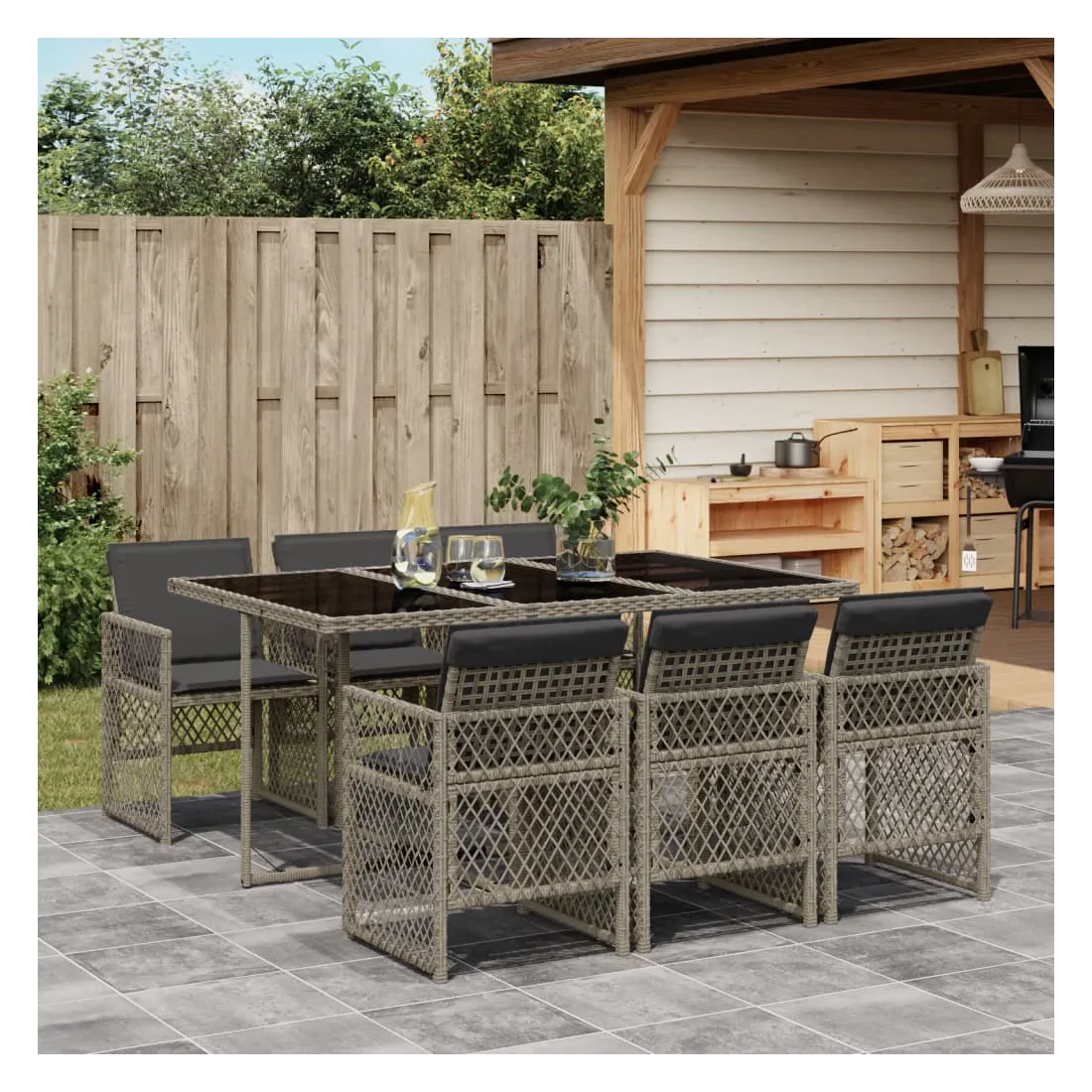 Cet ensemble de salle à manger de jardin est un excellent choix pour les repas en plein air ou pour vous détendre dans le jardin, l'arrière-cour ou le patio. Matériau durable : la résine tressée, également connue sous le nom de poly rotin, est un matériau synthétique solide et nécessitant peu d'entretien qui ressemble au rotin naturel. Elle est légère, facile à nettoyer et couramment utilisée pour les meubles d'extérieur en raison de sa durabilité et de ses propriétés de résistance aux intempéries. Dessus en verre : le dessus de la table d'extérieur est fabriqué en verre trempé solide et durable, ce qui le rend facile à nettoyer avec un chiffon humide et ajoute une touche d'élégance à votre espace extérieur. Rangement compact : ces chaises sont dotées d'un dossier rabattable, ce qui permet de les ranger facilement sous la table. Une fois pliées, elles se rangent parfaitement sous la table, formant un cube peu encombrant. Expérience d'assise confortable : ce mobilier d'extérieur, doté de coussins épais, offre une expérience d'assise confortable. Housse amovible et lavable : ces coussins de siège sont dotés de housses amovibles pour un lavage et un entretien faciles. Les housses de coussin de chaise ont un rabat à l'arrière pour une fixation facile aux chaises. Bon à savoir :Pour que vos meubles d'extérieur restent beaux, nous vous recommandons de les protéger avec une housse imperméable.