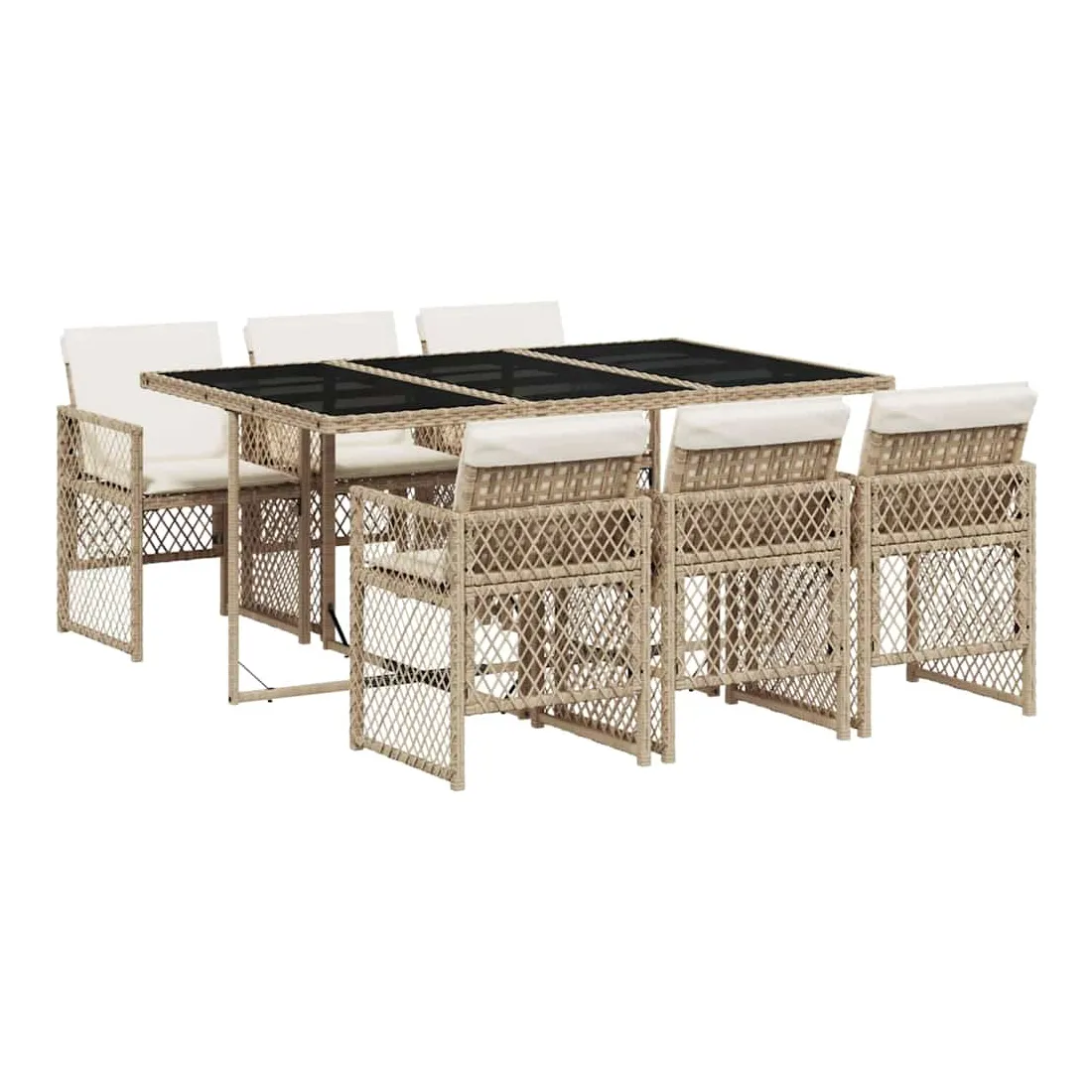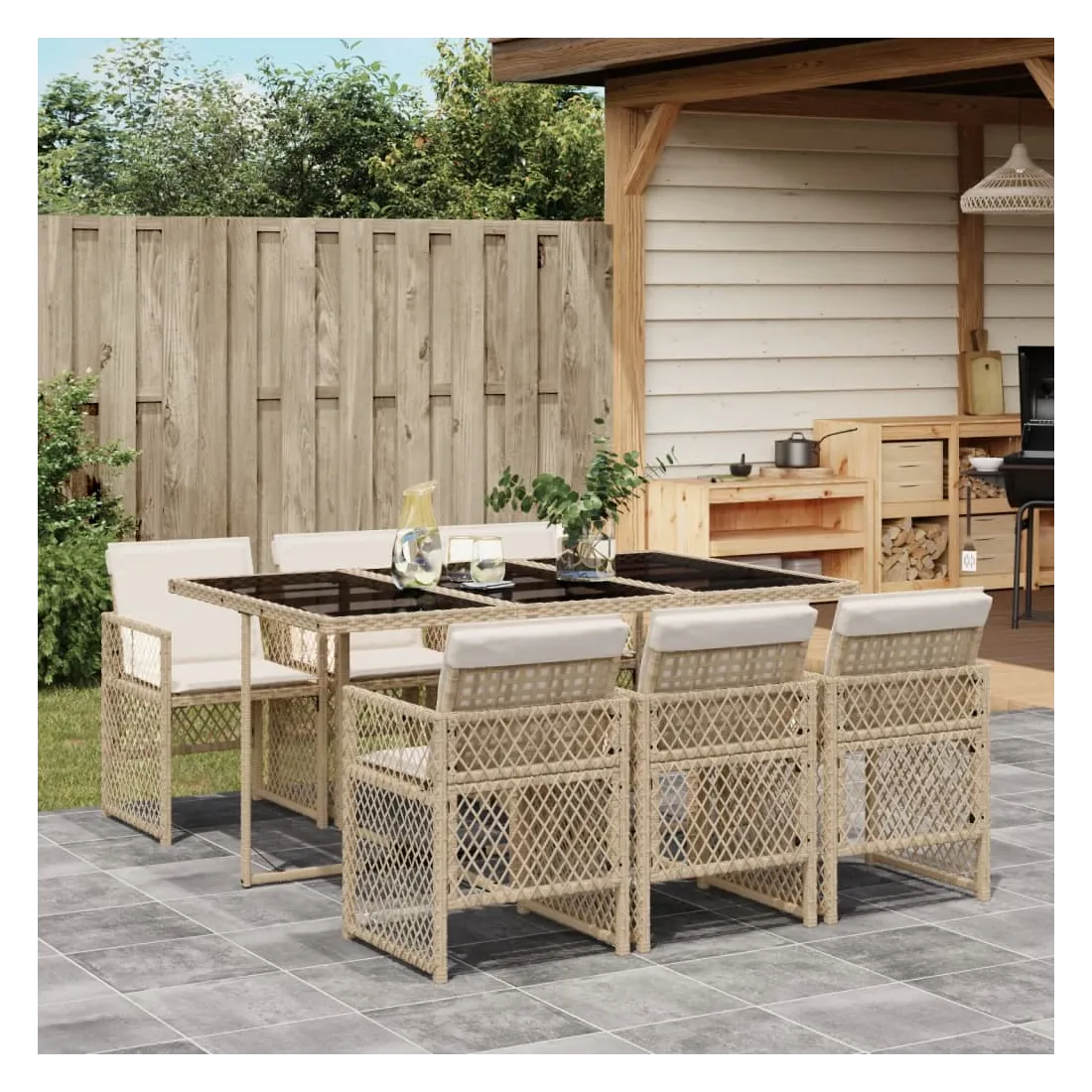 Cet ensemble de salle à manger de jardin est un excellent choix pour les repas en plein air ou pour vous détendre dans le jardin, l'arrière-cour ou le patio. Matériau durable : la résine tressée, également connue sous le nom de poly rotin, est un matériau synthétique solide et nécessitant peu d'entretien qui ressemble au rotin naturel. Elle est légère, facile à nettoyer et couramment utilisée pour les meubles d'extérieur en raison de sa durabilité et de ses propriétés de résistance aux intempéries. Dessus en verre : le dessus de la table d'extérieur est fabriqué en verre trempé solide et durable, ce qui le rend facile à nettoyer avec un chiffon humide et ajoute une touche d'élégance à votre espace extérieur. Rangement compact : ces chaises sont dotées d'un dossier rabattable, ce qui permet de les ranger facilement sous la table. Une fois pliées, elles se rangent parfaitement sous la table, formant un cube peu encombrant. Expérience d'assise confortable : ce mobilier d'extérieur, doté de coussins épais, offre une expérience d'assise confortable. Housse amovible et lavable : ces coussins de siège sont dotés de housses amovibles pour un lavage et un entretien faciles. Les housses de coussin de chaise ont un rabat à l'arrière pour une fixation facile aux chaises. Bon à savoir :Pour que vos meubles d'extérieur restent beaux, nous vous recommandons de les protéger avec une housse imperméable.