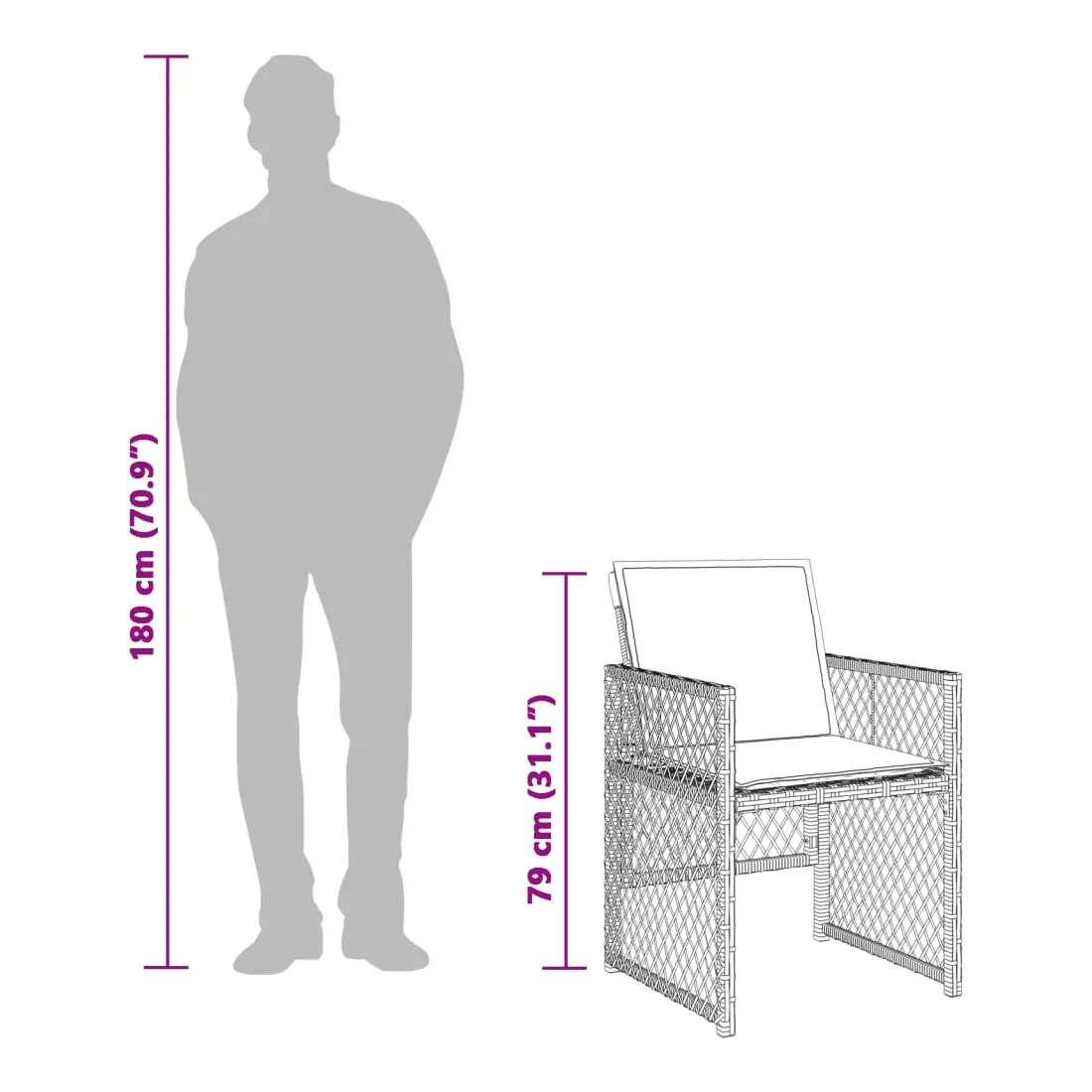 - Dimensions de la chaise de jardin : 50,5 x 54 x 79 cm (l x P x H)