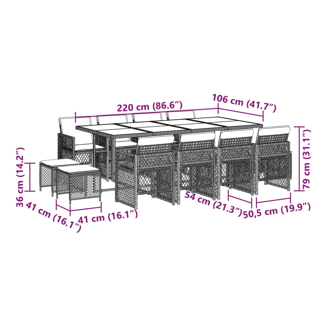 Cet ensemble de salle à manger de jardin est un excellent choix pour les repas en plein air ou pour vous détendre dans le jardin, l'arrière-cour ou le patio. Matériau durable : la résine tressée, également connue sous le nom de poly rotin, est un matériau synthétique solide et nécessitant peu d'entretien qui ressemble au rotin naturel. Elle est légère, facile à nettoyer et couramment utilisée pour les meubles d'extérieur en raison de sa durabilité et de ses propriétés de résistance aux intempéries. Dessus en verre : le dessus de la table d'extérieur est fabriqué en verre trempé solide et durable, ce qui le rend facile à nettoyer avec un chiffon humide et ajoute une touche d'élégance à votre espace extérieur. Rangement compact : ces chaises sont dotées d'un dossier rabattable, ce qui permet de les ranger facilement sous la table. Une fois pliées, elles se rangent parfaitement sous la table, formant un cube peu encombrant. De plus, les tabourets peuvent également être rangés sous les chaises, maximisant encore davantage l'efficacité de l'espace. Expérience d'assise confortable : ce mobilier d'extérieur, doté de coussins épais, offre une expérience d'assise confortable. Housse amovible et lavable : ces coussins de siège sont dotés de housses amovibles pour un lavage et un entretien faciles. Les housses de coussin de chaise ont un rabat à l'arrière pour une fixation facile aux chaises. Bon à savoir :Pour que vos meubles d'extérieur restent beaux, nous vous recommandons de les protéger avec une housse imperméable.