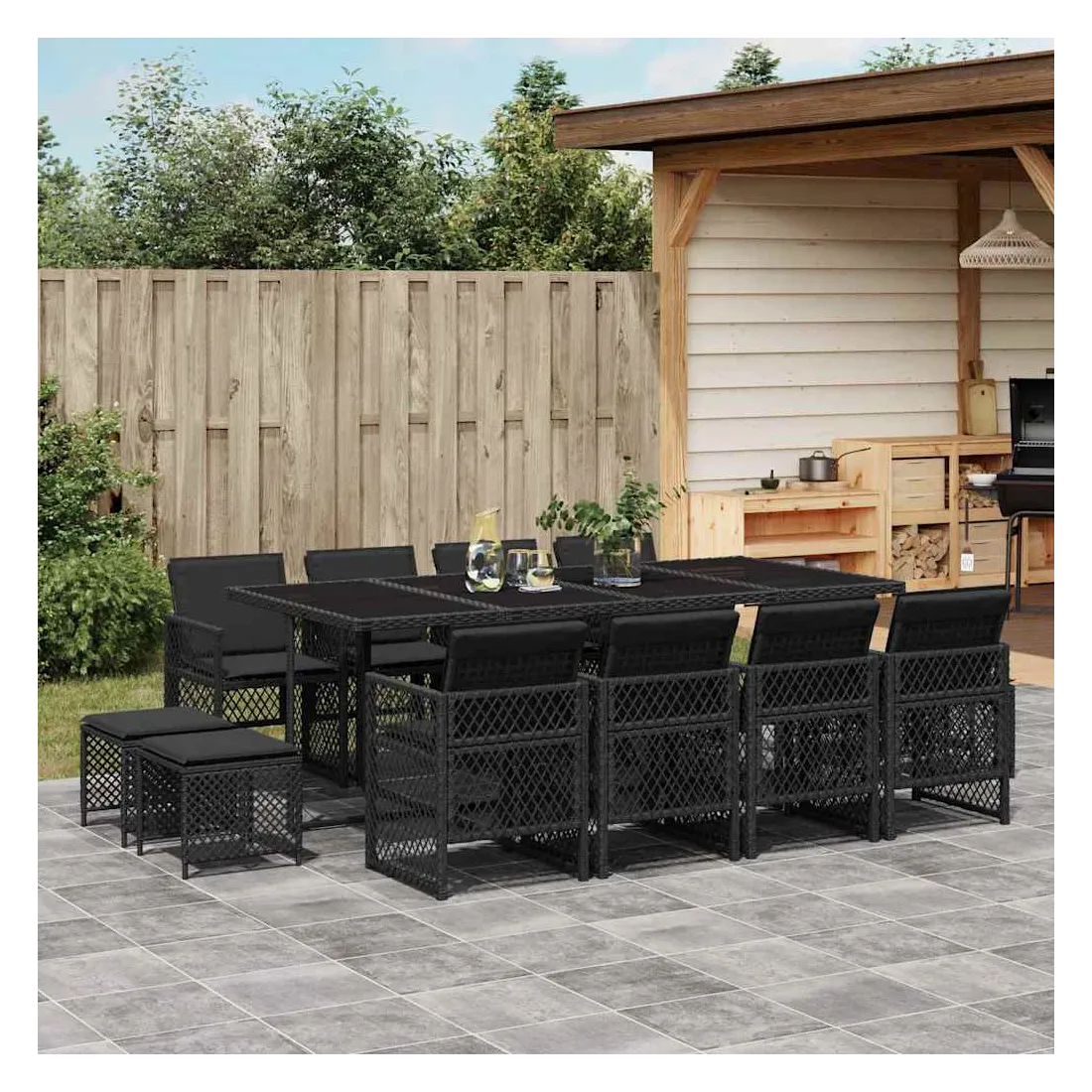 Cet ensemble de salle à manger de jardin est un excellent choix pour les repas en plein air ou pour vous détendre dans le jardin, l'arrière-cour ou le patio. Matériau durable : la résine tressée, également connue sous le nom de poly rotin, est un matériau synthétique solide et nécessitant peu d'entretien qui ressemble au rotin naturel. Elle est légère, facile à nettoyer et couramment utilisée pour les meubles d'extérieur en raison de sa durabilité et de ses propriétés de résistance aux intempéries. Dessus en verre : le dessus de la table d'extérieur est fabriqué en verre trempé solide et durable, ce qui le rend facile à nettoyer avec un chiffon humide et ajoute une touche d'élégance à votre espace extérieur. Rangement compact : ces chaises sont dotées d'un dossier rabattable, ce qui permet de les ranger facilement sous la table. Une fois pliées, elles se rangent parfaitement sous la table, formant un cube peu encombrant. De plus, les tabourets peuvent également être rangés sous les chaises, maximisant encore davantage l'efficacité de l'espace. Expérience d'assise confortable : ce mobilier d'extérieur, doté de coussins épais, offre une expérience d'assise confortable. Housse amovible et lavable : ces coussins de siège sont dotés de housses amovibles pour un lavage et un entretien faciles. Les housses de coussin de chaise ont un rabat à l'arrière pour une fixation facile aux chaises. Bon à savoir :Pour que vos meubles d'extérieur restent beaux, nous vous recommandons de les protéger avec une housse imperméable.