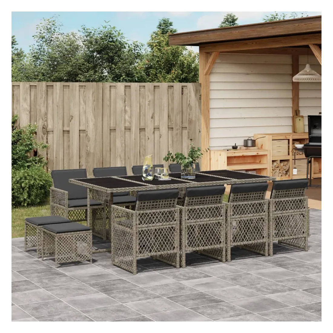 Cet ensemble de salle à manger de jardin est un excellent choix pour les repas en plein air ou pour vous détendre dans le jardin, l'arrière-cour ou le patio. Matériau durable : la résine tressée, également connue sous le nom de poly rotin, est un matériau synthétique solide et nécessitant peu d'entretien qui ressemble au rotin naturel. Elle est légère, facile à nettoyer et couramment utilisée pour les meubles d'extérieur en raison de sa durabilité et de ses propriétés de résistance aux intempéries. Dessus en verre : le dessus de la table d'extérieur est fabriqué en verre trempé solide et durable, ce qui le rend facile à nettoyer avec un chiffon humide et ajoute une touche d'élégance à votre espace extérieur. Rangement compact : ces chaises sont dotées d'un dossier rabattable, ce qui permet de les ranger facilement sous la table. Une fois pliées, elles se rangent parfaitement sous la table, formant un cube peu encombrant. De plus, les tabourets peuvent également être rangés sous les chaises, maximisant encore davantage l'efficacité de l'espace. Expérience d'assise confortable : ce mobilier d'extérieur, doté de coussins épais, offre une expérience d'assise confortable. Housse amovible et lavable : ces coussins de siège sont dotés de housses amovibles pour un lavage et un entretien faciles. Les housses de coussin de chaise ont un rabat à l'arrière pour une fixation facile aux chaises. Bon à savoir :Pour que vos meubles d'extérieur restent beaux, nous vous recommandons de les protéger avec une housse imperméable.