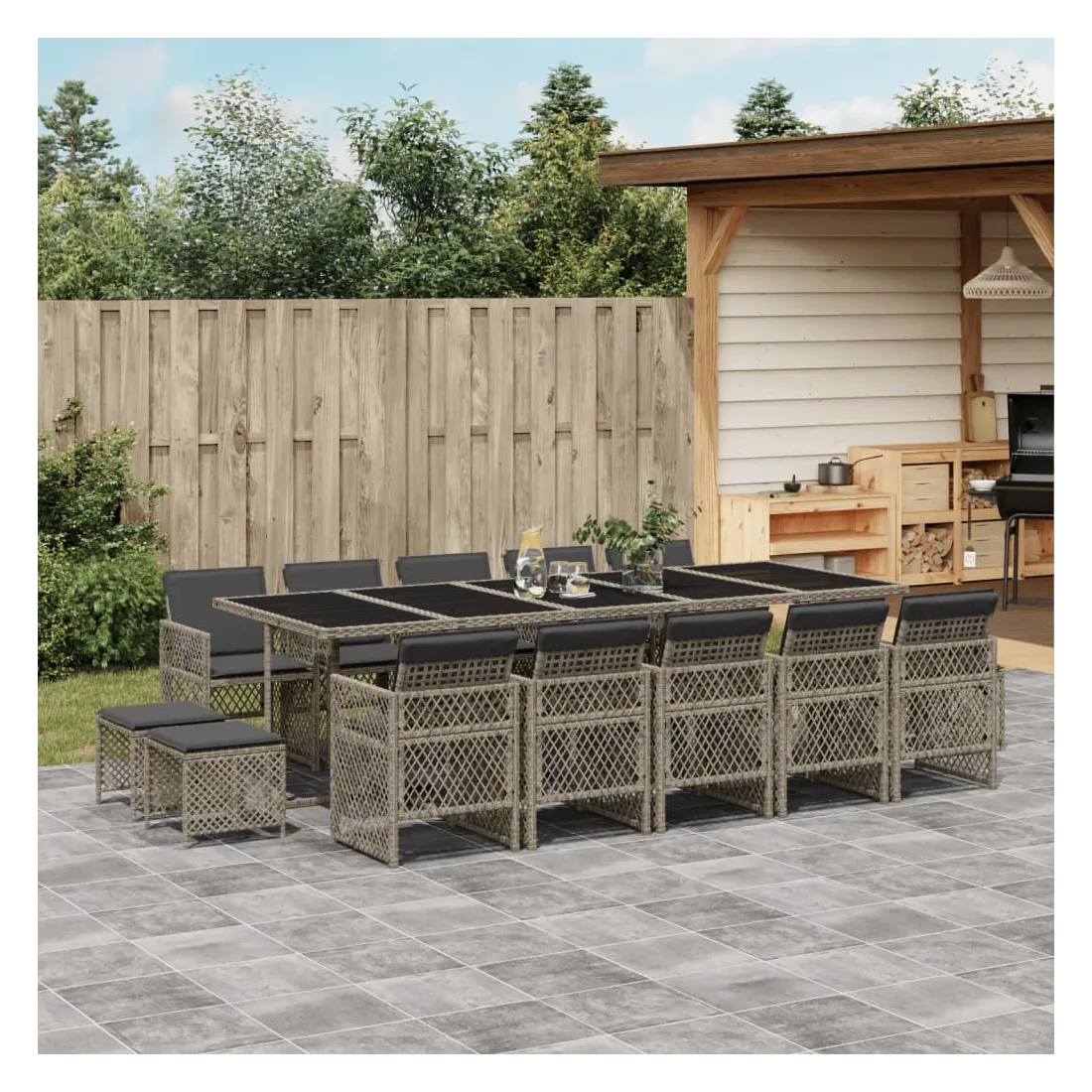 Cet ensemble de salle à manger de jardin est un excellent choix pour les repas en plein air ou pour vous détendre dans le jardin, l'arrière-cour ou le patio. Matériau durable : la résine tressée, également connue sous le nom de poly rotin, est un matériau synthétique solide et nécessitant peu d'entretien qui ressemble au rotin naturel. Elle est légère, facile à nettoyer et couramment utilisée pour les meubles d'extérieur en raison de sa durabilité et de ses propriétés de résistance aux intempéries. Dessus en verre : le dessus de la table d'extérieur est fabriqué en verre trempé solide et durable, ce qui le rend facile à nettoyer avec un chiffon humide et ajoute une touche d'élégance à votre espace extérieur. Rangement compact : ces chaises sont dotées d'un dossier rabattable, ce qui permet de les ranger facilement sous la table. Une fois pliées, elles se rangent parfaitement sous la table, formant un cube peu encombrant. De plus, les tabourets peuvent également être rangés sous les chaises, maximisant encore davantage l'efficacité de l'espace. Expérience d'assise confortable : ce mobilier d'extérieur, doté de coussins épais, offre une expérience d'assise confortable. Housse amovible et lavable : ces coussins de siège sont dotés de housses amovibles pour un lavage et un entretien faciles. Les housses de coussin de chaise ont un rabat à l'arrière pour une fixation facile aux chaises. Bon à savoir :Pour que vos meubles d'extérieur restent beaux, nous vous recommandons de les protéger avec une housse imperméable.